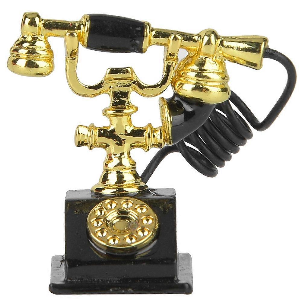Vintage 1:12 Miniature Telephone Doll House Accessory Room Furniture Toy (Black)