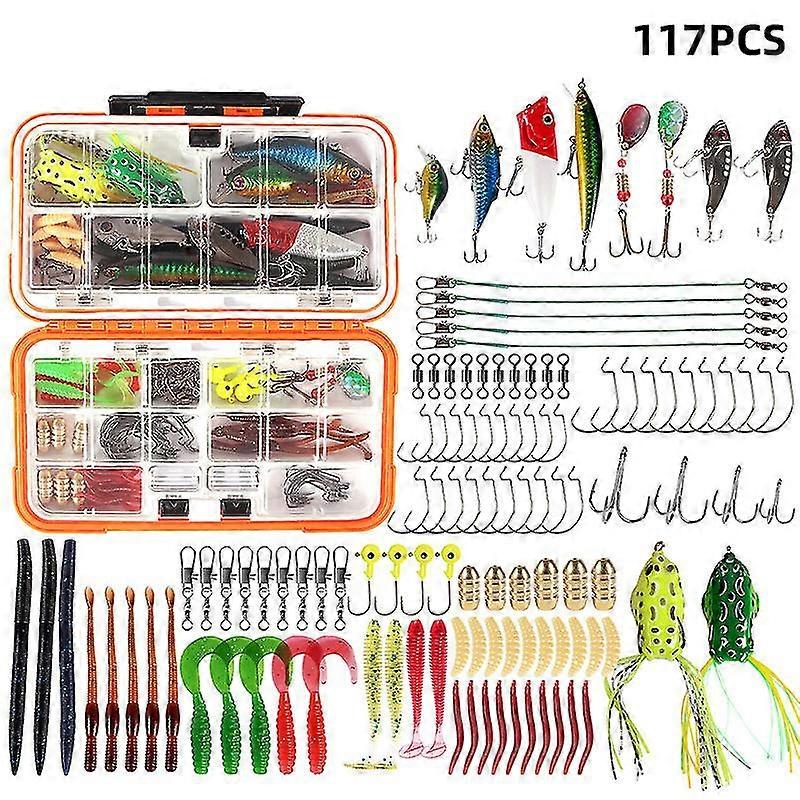 117pcs/kit Rock Fishing Crank Hook Soft Bait/fake Bait Fishing Accessories Kit Waterproof/wear-resistant Box Tools