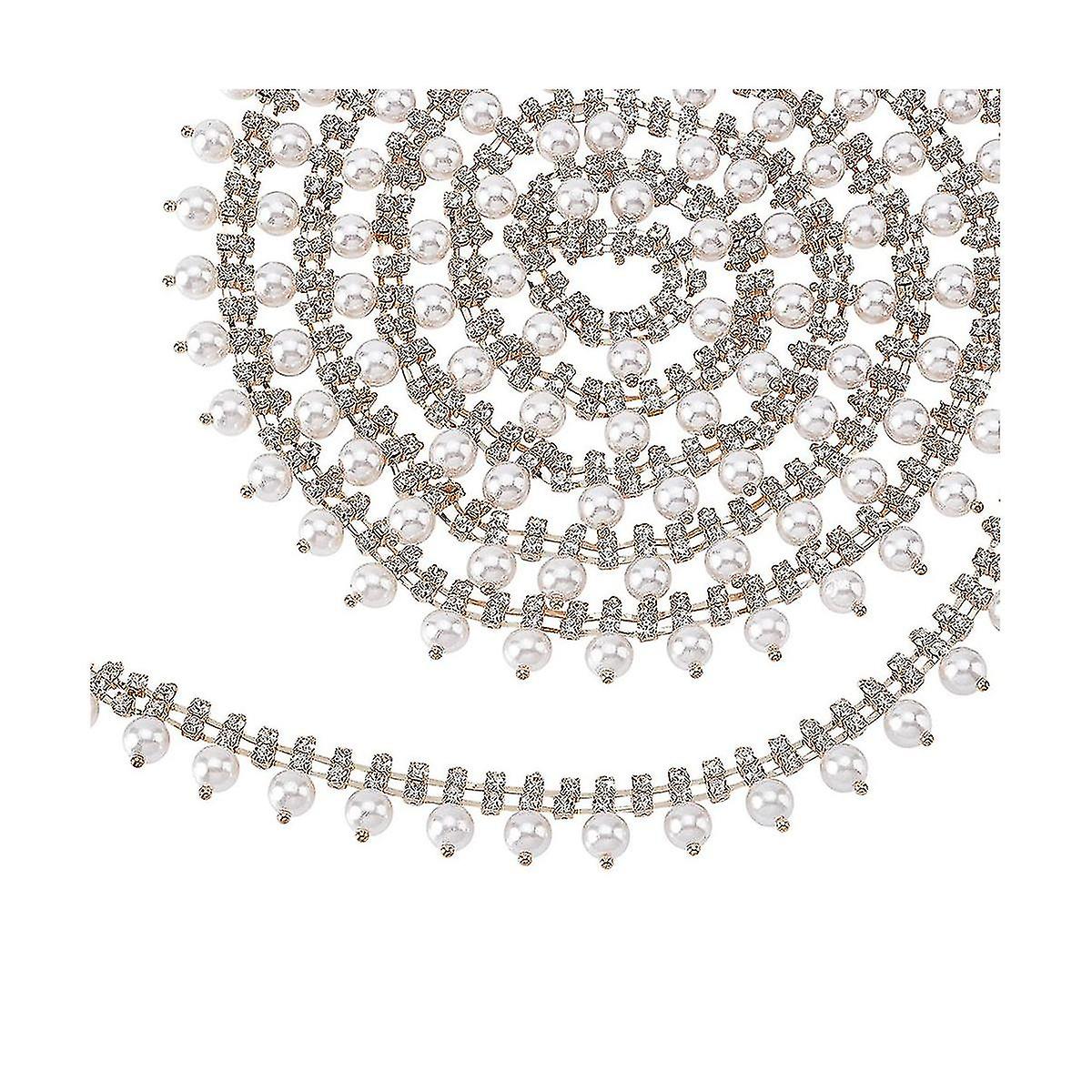 11yard Rhinestone Fringe Trim, Gold Rhinestone Chain Sew On Edging Pearl Beaded Applique Chain For Home Decor