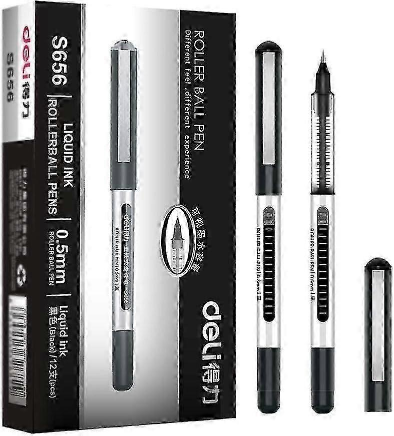 12 Pack Black Rollerball Pens, Fine Point Pens, 0.5mm Liquid Ink Pens, Quick Dry, No Smudge, No Bleeding.