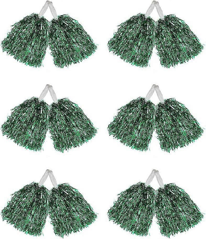 12 Pack Pom Poms Cheerleading Metallic Foil Cheer Pom Poms With Plastic Handles For Cheering Squard Team Spirit Sports