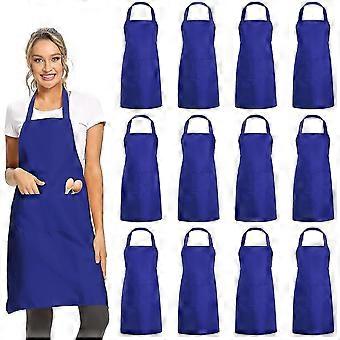 12 Pack Plain Bib Aprons With 2 Pockets - Blue Unisex Commercial Apron Bulk For Kitchen Cooking Restaurant Bbq Painting Crafting