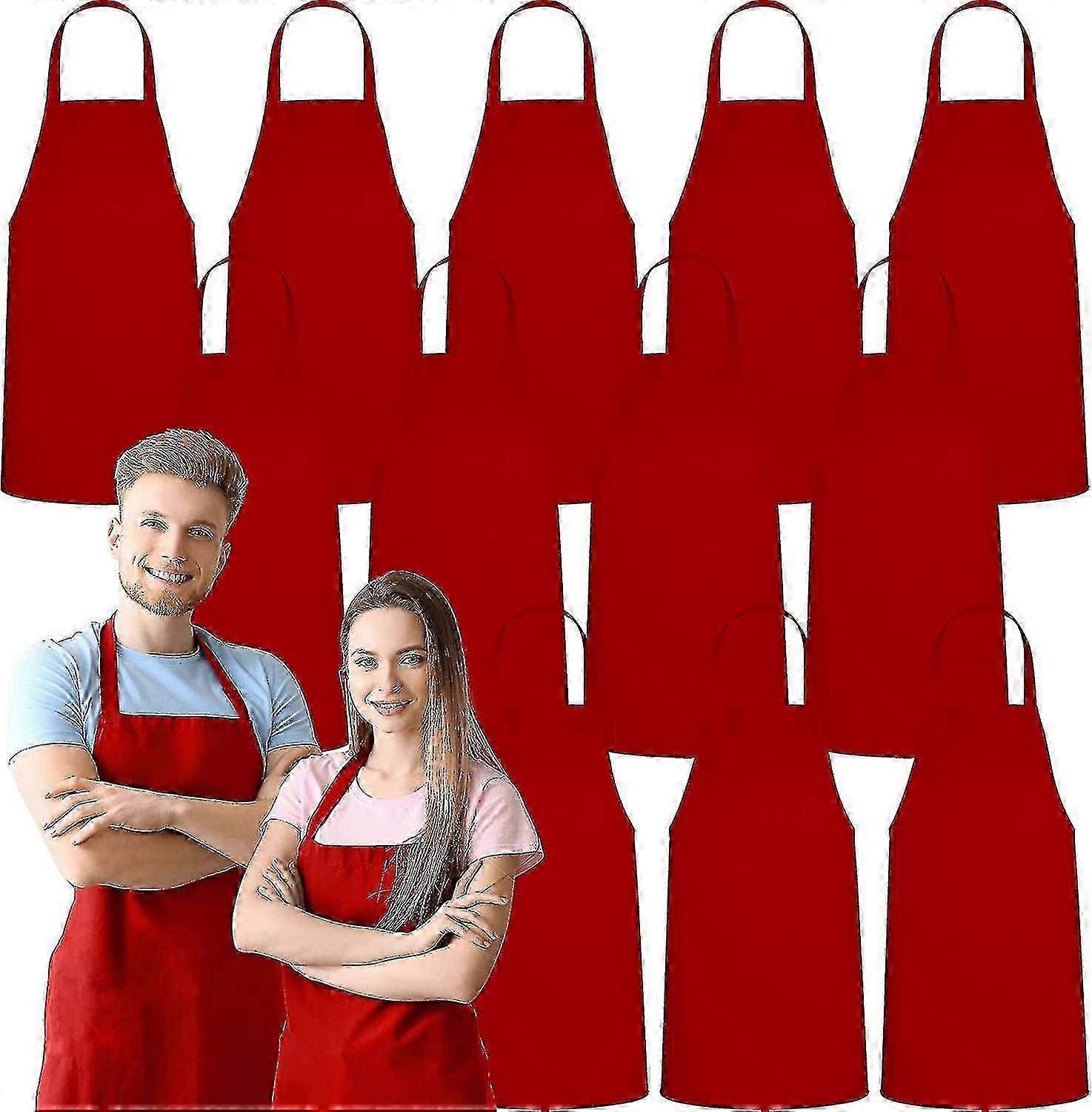 12 Pack Bib Apron - Unisex Red Aprons, Machine Washable Aprons For Men And Women, Kitchen Cooking Bbq Aprons Bulk (pack Of 12, No Pockets, Red)