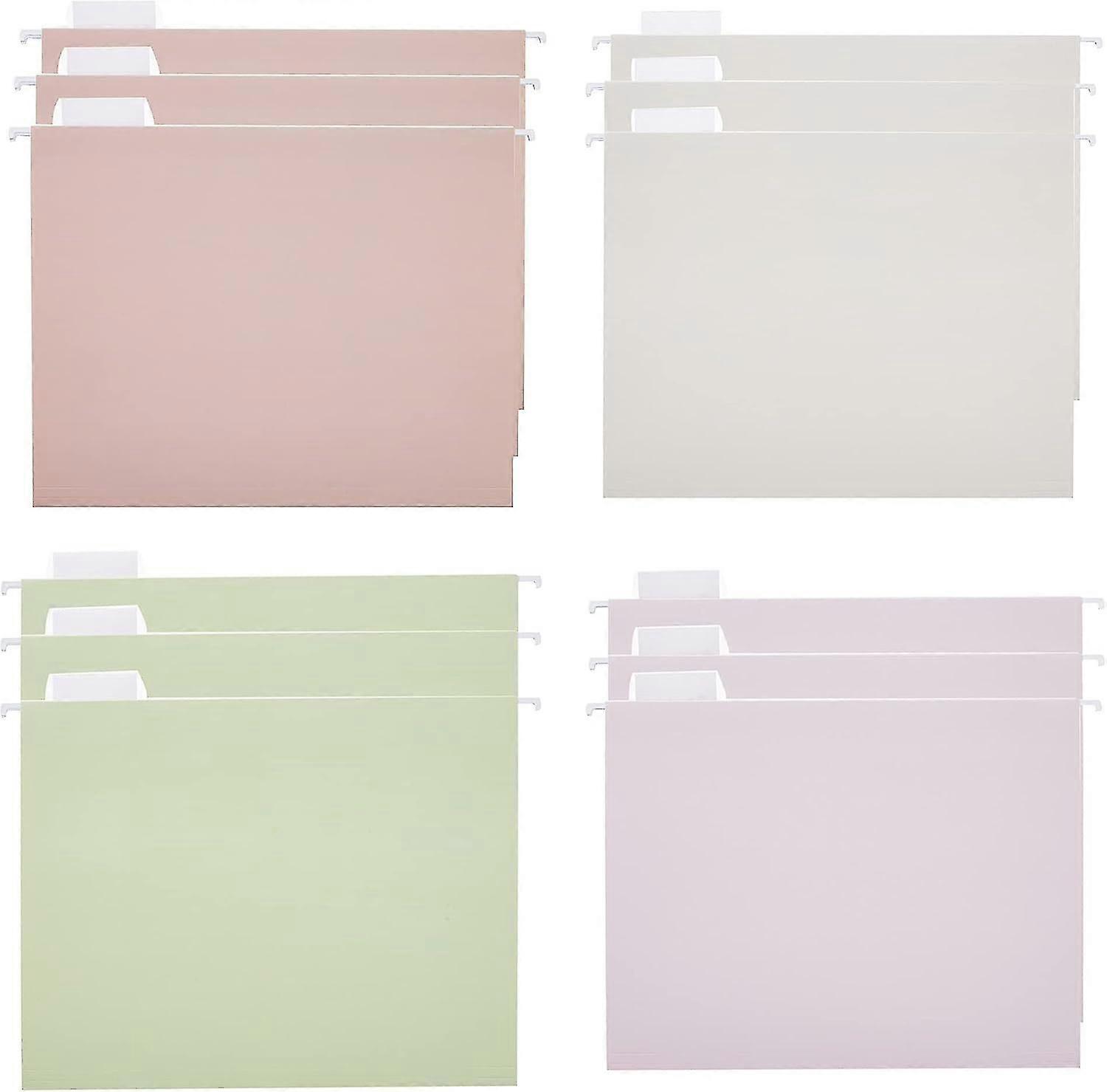 12 Pack Hanging File Folders Filing Cabinet Organizer Letter Size 1/5 Cut Adjustable Tabs Decorative for Home Office School Classroom,4 Colors