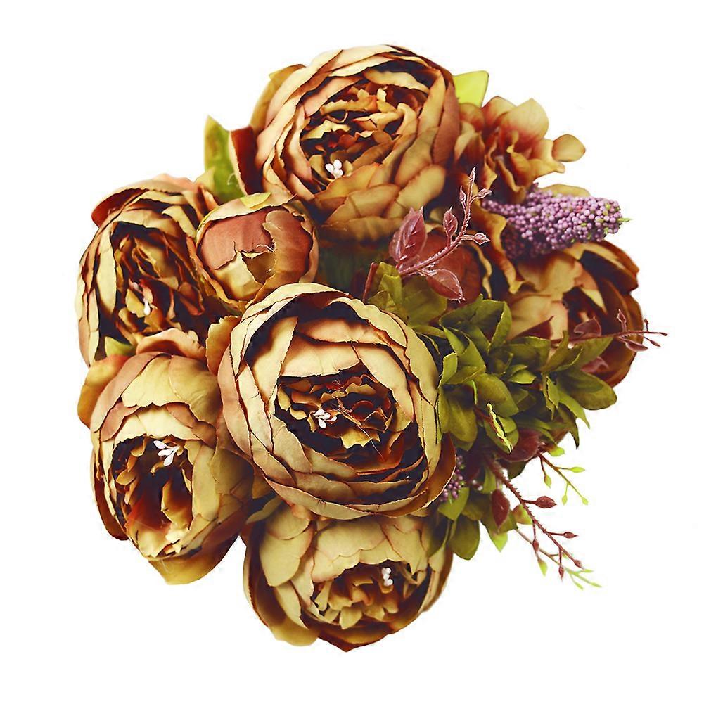 European Style Real Touch Vogue Bridal Wedding Artifical Flowers 12 Heads Bouquet Chromatic Peony Flower Colours available at the moment (see pictures): 1. White2. Brown3 Gold4. Rose Pink5. Burgundy6. Purple These artificial Peonies are absolutely stunning. They are very realistic and often mistaken for real ones. Each bouquet includes 6 open peonies and 2 buds, 2 Spring stems, 2 foam stripes, Diameter of open peony is about 9cm(3.54") Total height of bouquet is 50cm (20") Outer petals are made of PU(latex), center petals are silk. These flowers are very easy to arrange as each stem has a wire inside so it can be bent any way you like it. These are perfect for wedding, as well as decorating your home or for using in a showroom or shop.