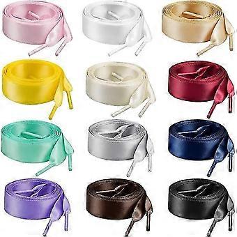 12 Pairs 100cm Flat Satin Ribbon Shoelaces, Colorful Wide Silk Shoestrings for Sneakers & Boots (12 Colors)