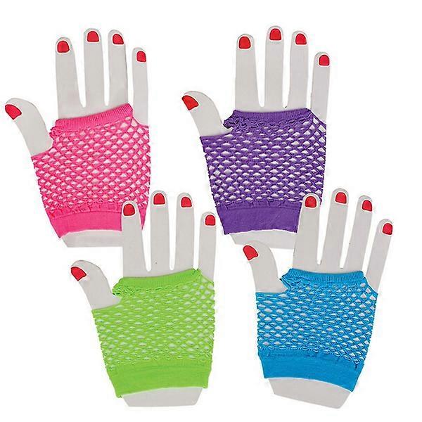 12 Pairs of Unisex Adult Nylon Fishnet Fingerless Wrist Gloves Short Gloves for Club /Party /Costume Ball - One Size (Random Color)