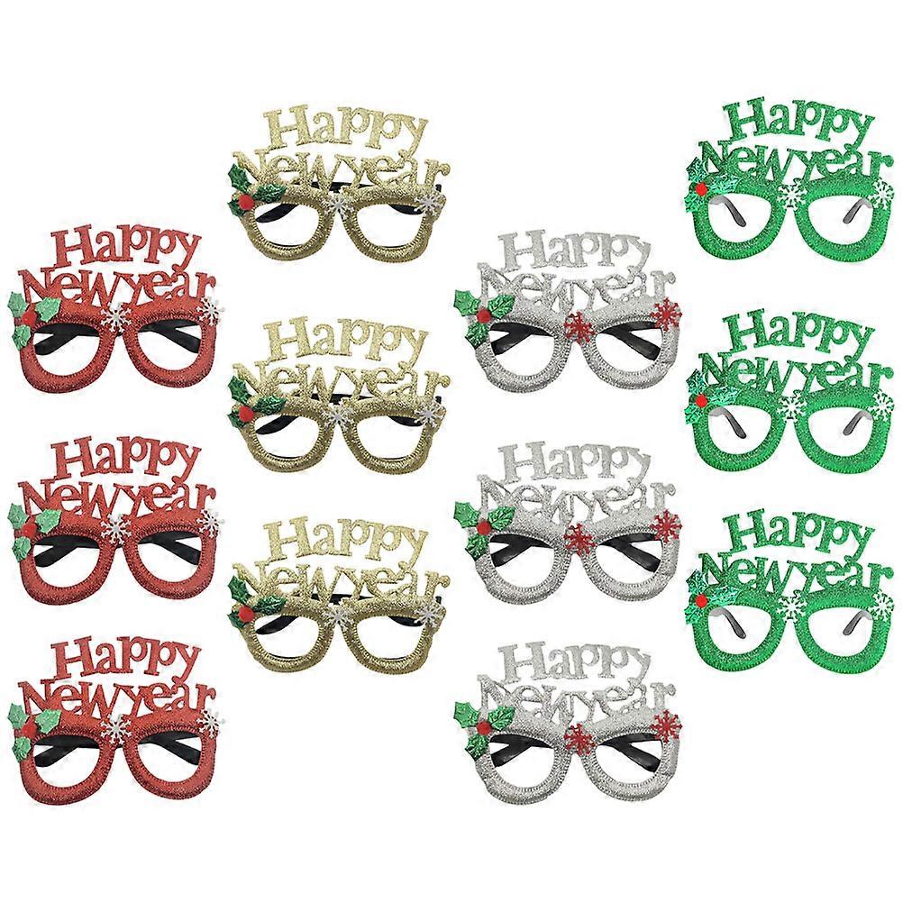 12 Pairs Festive Party Glasses with Glitter – Silver, Gold, Green, Red – Unique Holiday Accessory for New Year’s Eve Celebration – Decorative Eyewear