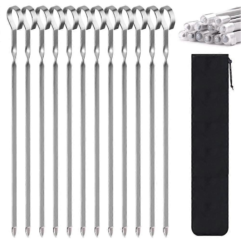 12 Pack Kabob Skewers Flat Metal BBQ Barbecue Skewer Stainless Steel Shish Kebob Sticks Reusable Grilling