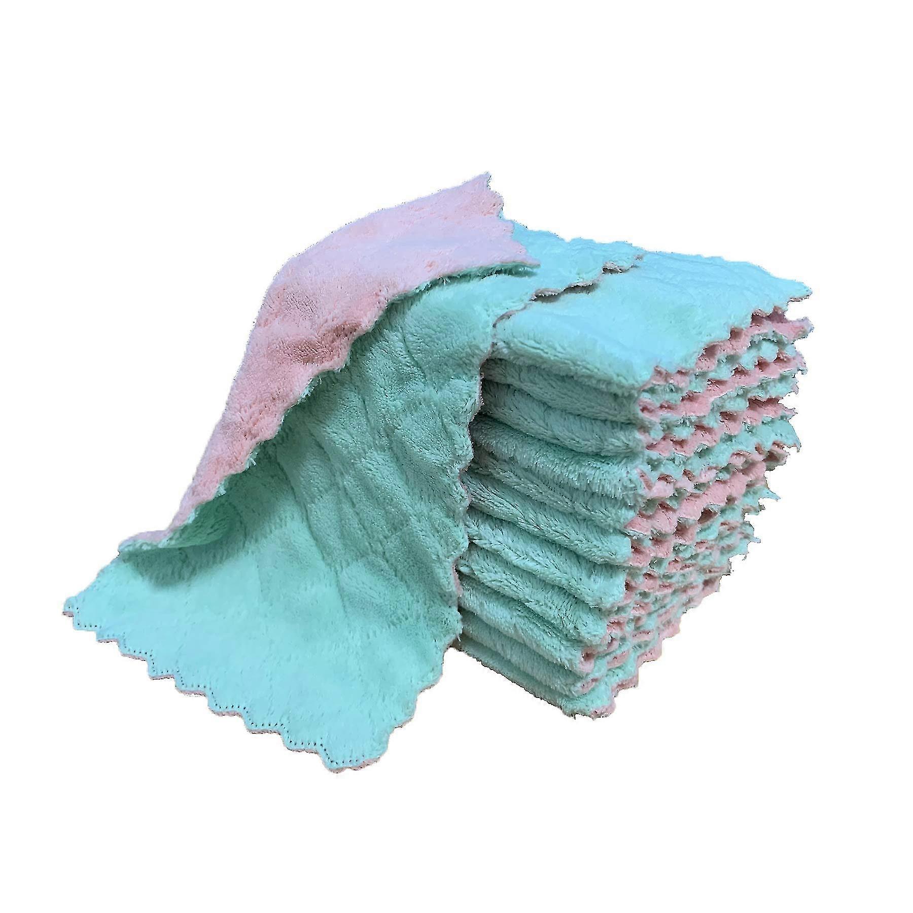 12 pack kitchen rags dish towel super absorbent coral fleece towel non-stick oil green pink