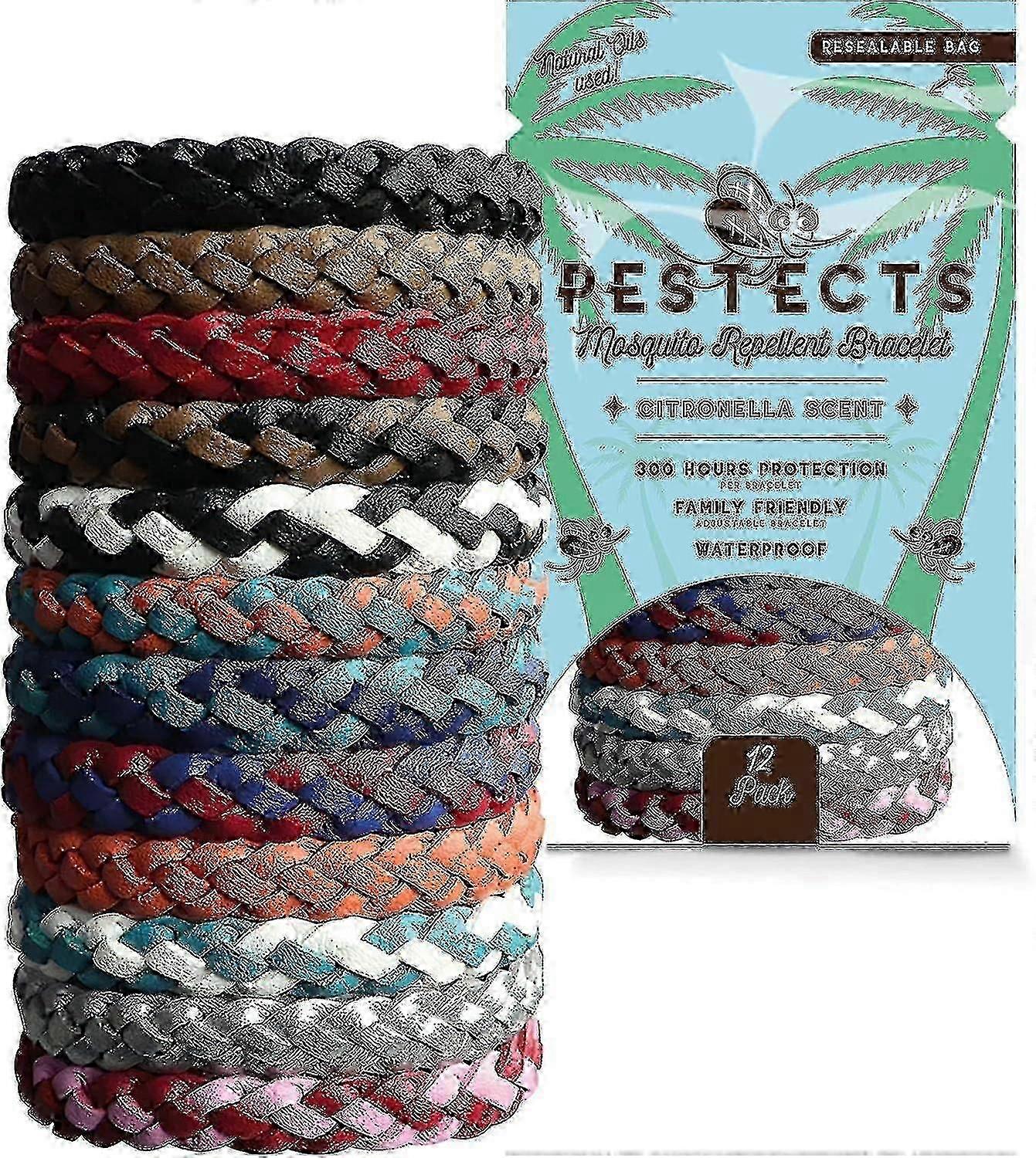 12 Pack Natural Mosquito Repellent Bracelet for Adults & Kids - DEET-Free, Adjustable Leather Band, 300 Hour Protection