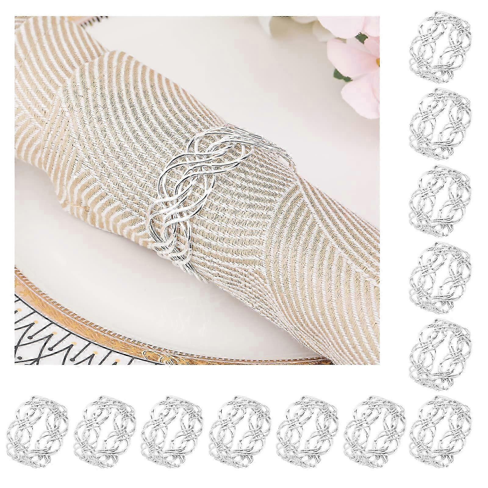 12-Pack Napkin Rings, Metallic Twined Napkin Rings,Silver