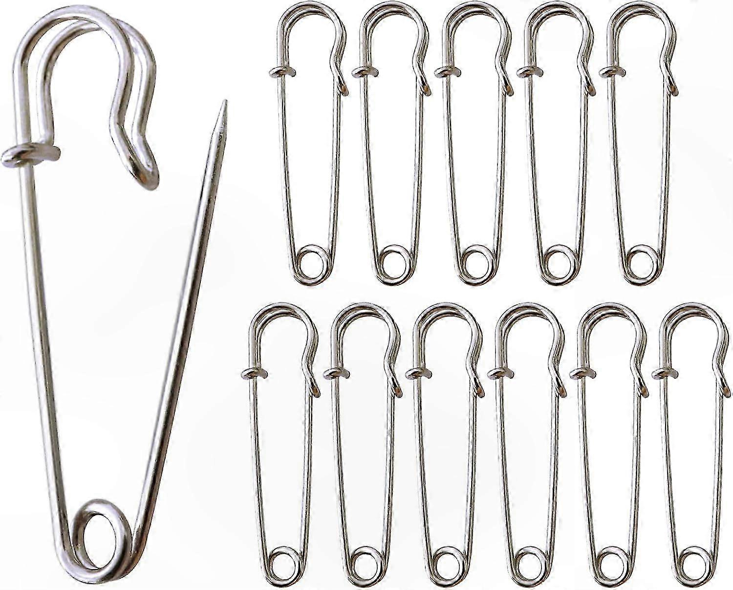 12-Pack Oversized Safety Pins, 63mm Heavy-Duty Pins for Crafting, Sewing, and Fabric Projects