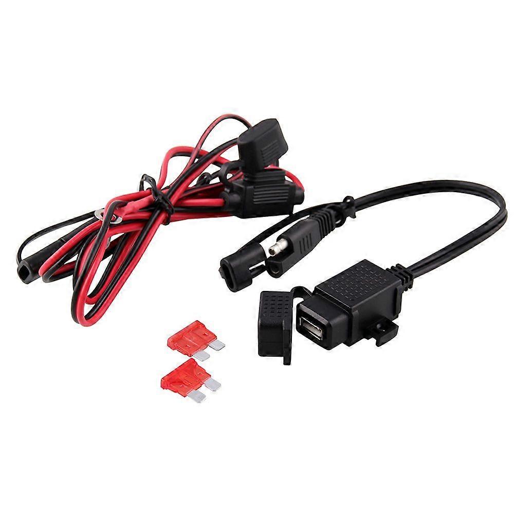 12V Dual USB Waterproof Motorcycle SAE to USB Mobile Phone GPS Charger Cable Adapter Inline Fuse Power Supply