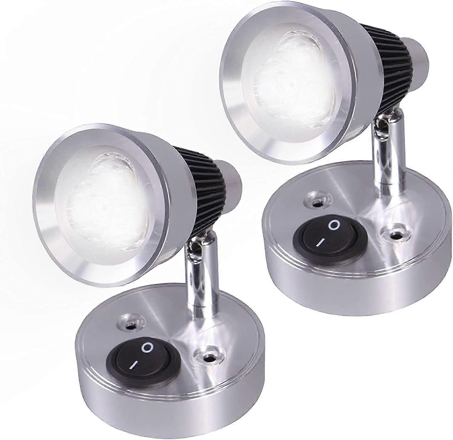 12V LED Spot Wall Reading Lamp 2pcs Auto LED Light Adjustable Switch Interior Caravan Van Light for Motorhome, Camper Van, Boat (Cool White)