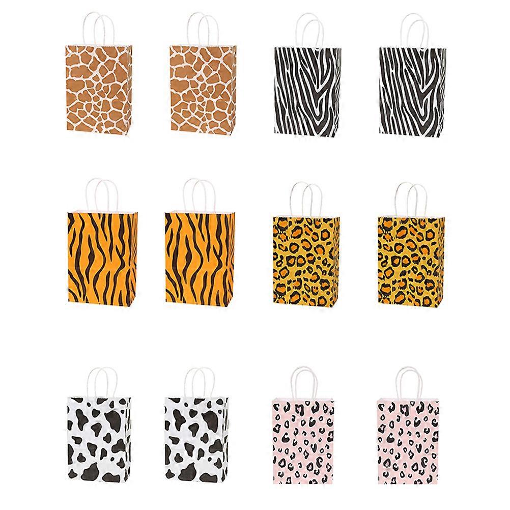 12pcs Animal Pattern Decorative Pouches Party Favor Bags Cartoon Tote Bags for Candy Favors Colorful Printed Paper Bags