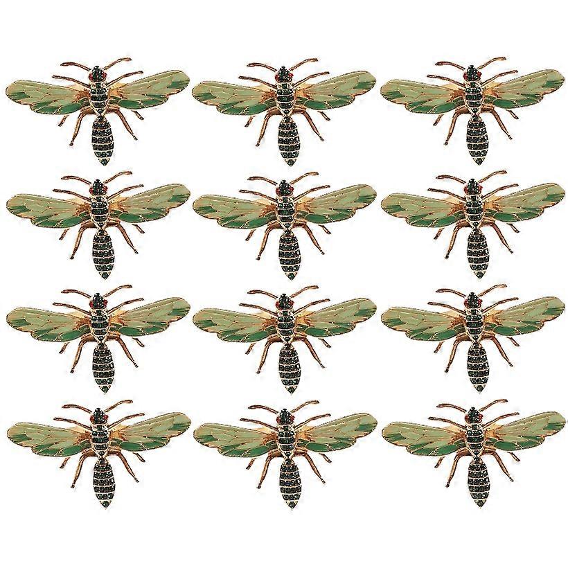 12Pcs Dragonfly Napkin Buckle Napkin Ring Alloy Green Insect Dragonfly Drip Diamond Buckle Paper To