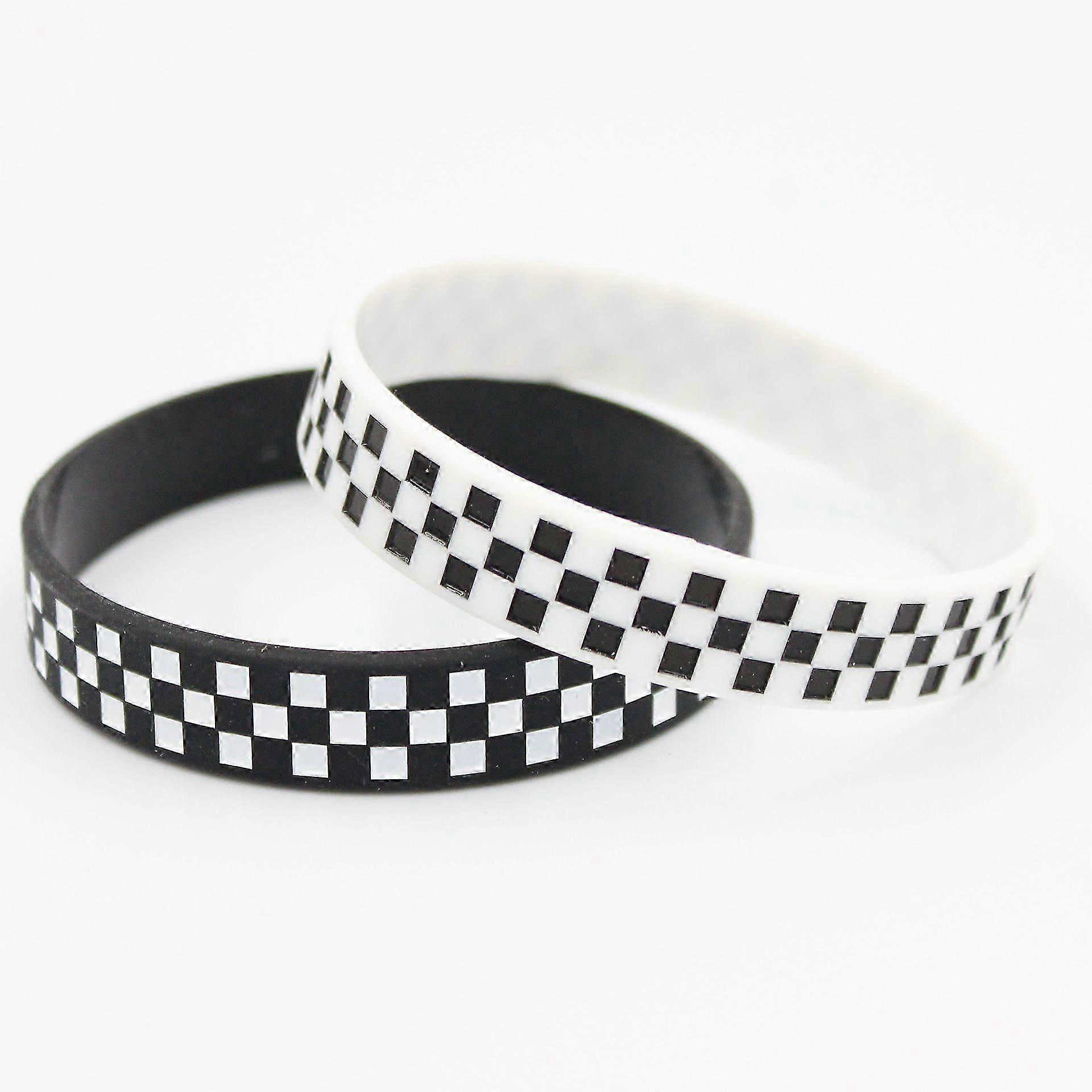 12pcs Black White Checkered Wristbands Stylish Plaid Pattern Silicone Bracelets For Racing Theme Party Sports Events Concerts Sleek Bracelet For Racin