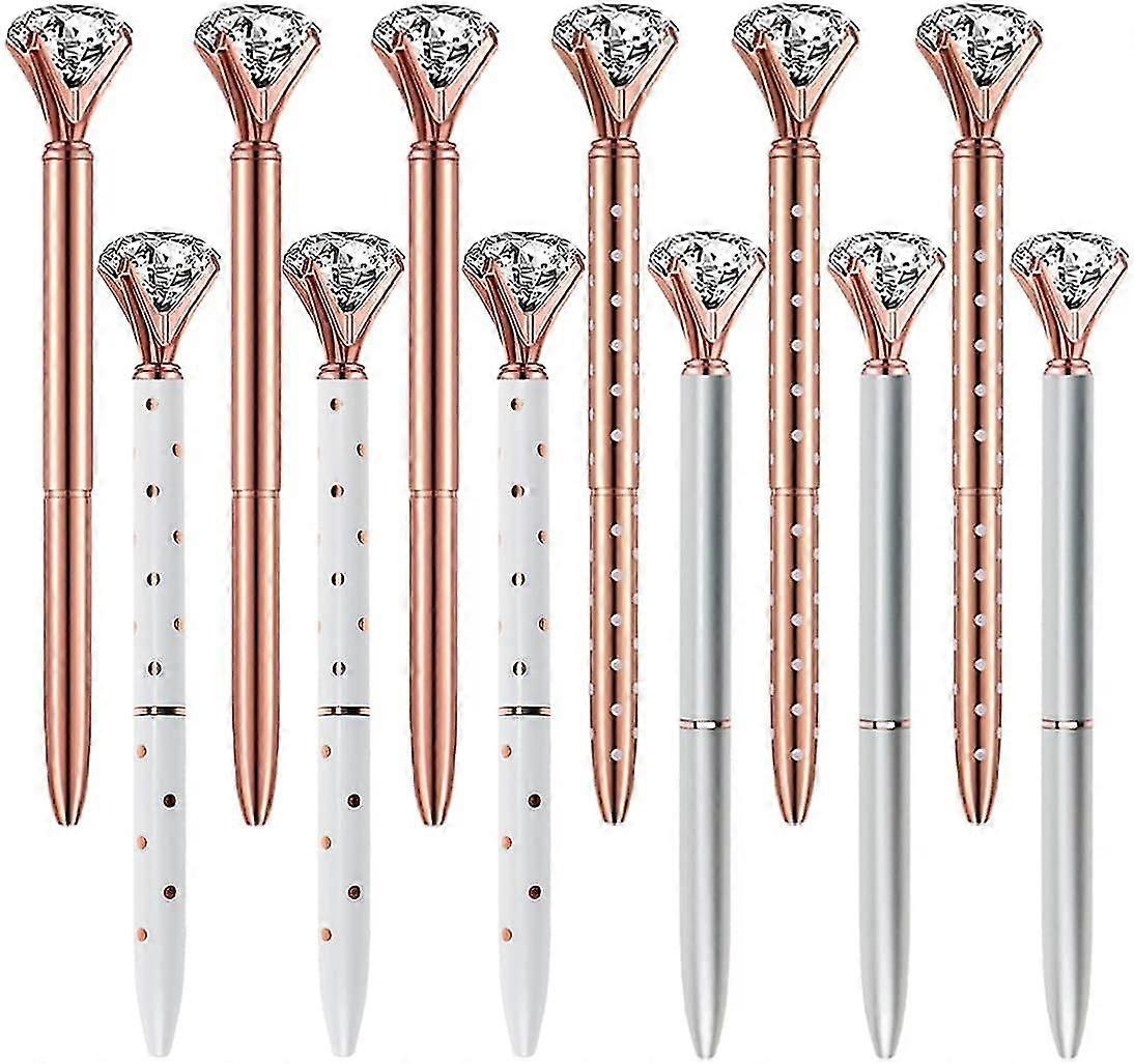 12 Pcs Diamond Crystal Pens,metal Ballpoint Pen 0.5mm Black