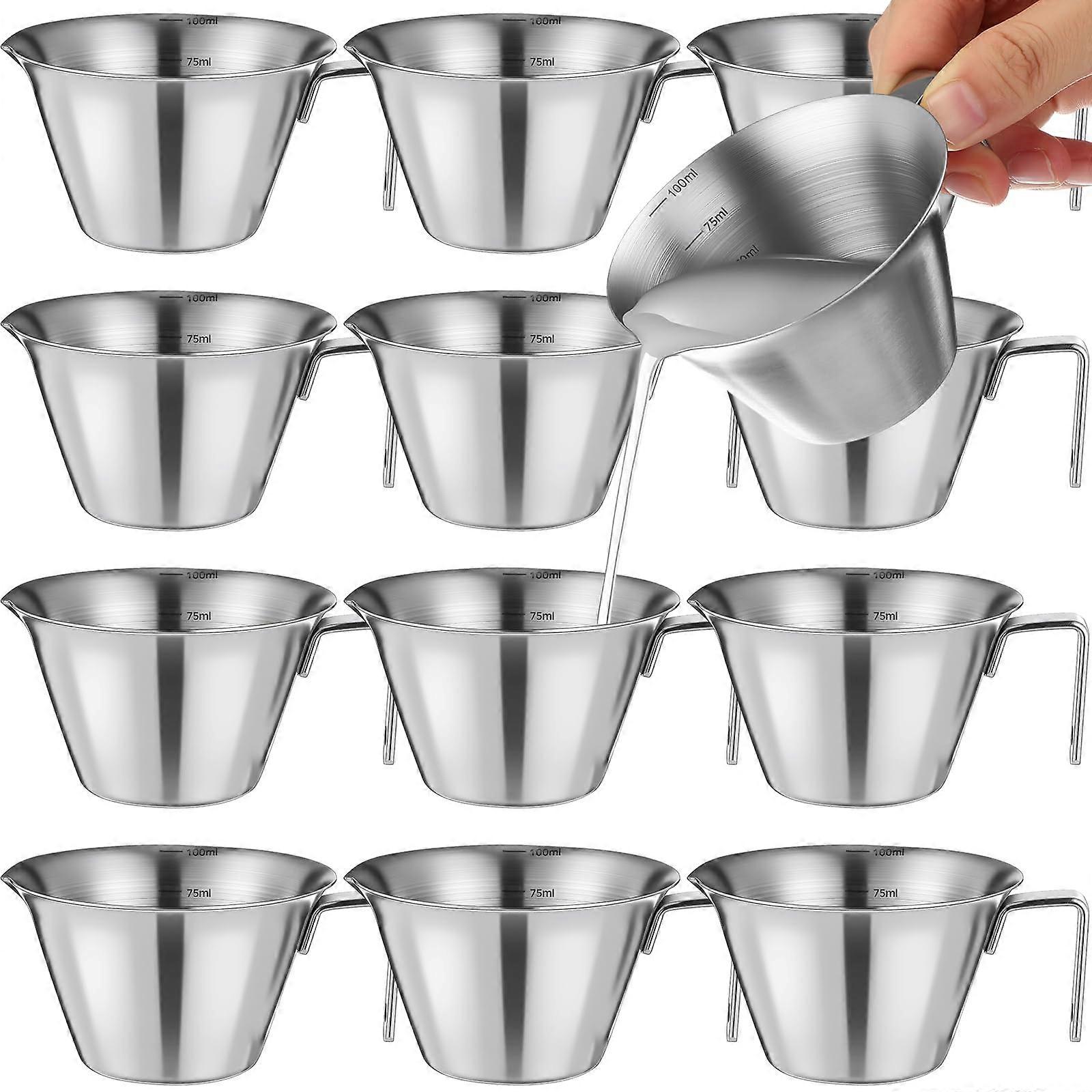 12 Pcs Stainless Steel Espresso Shot Cups 3.4 oz with Spout and Handle, Metal Coffee Measuring Accessories