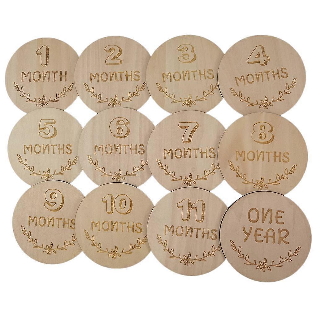 12 Pcs Newborn Monthly Growth Recording Cards Wooden Birth Commemorative Cards Photography Props