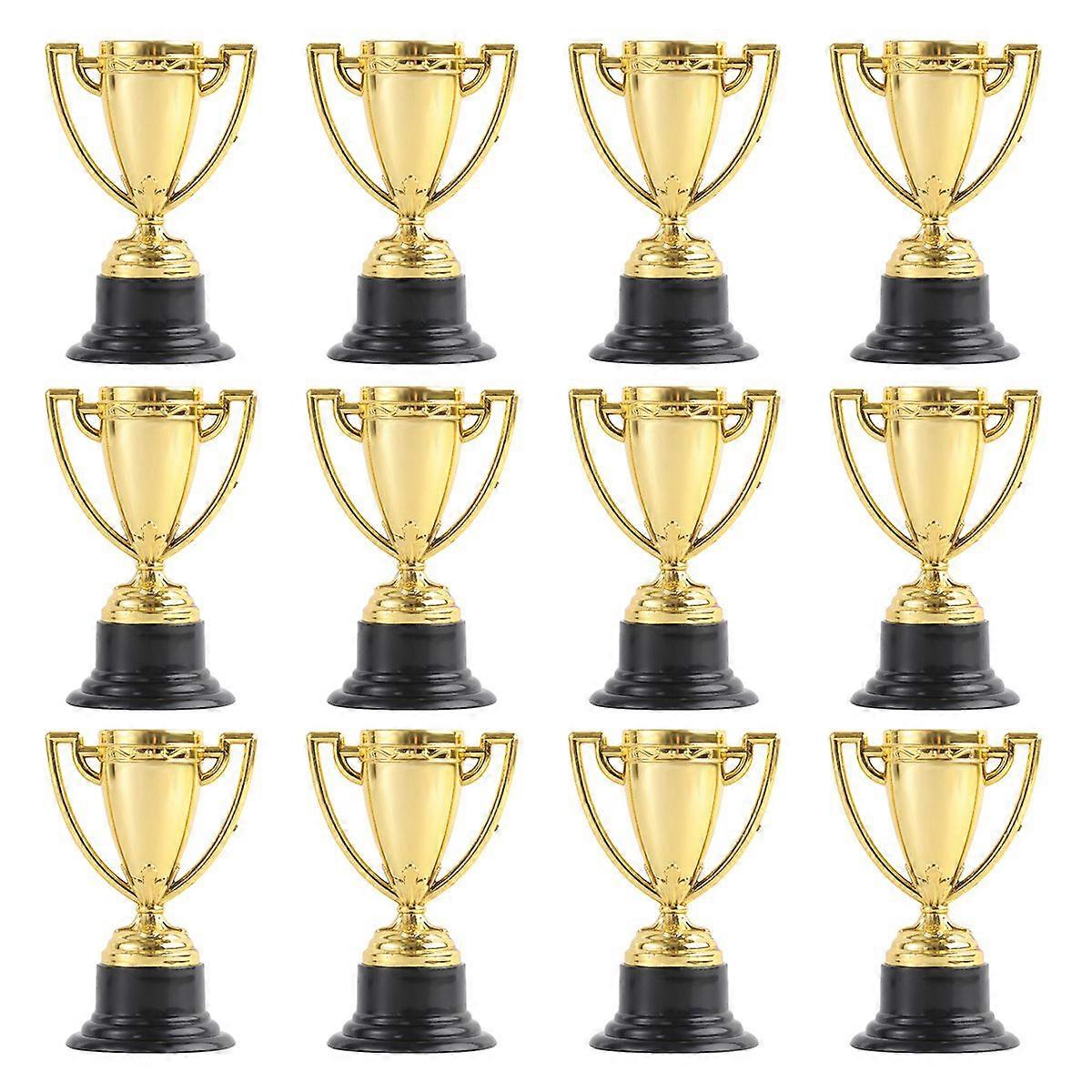 12pcs Golden Mini Award Trophy Plastic Reward Prizes Decor Kindergarten Kids Gift Awards Trophy with Black Base for Competition Games