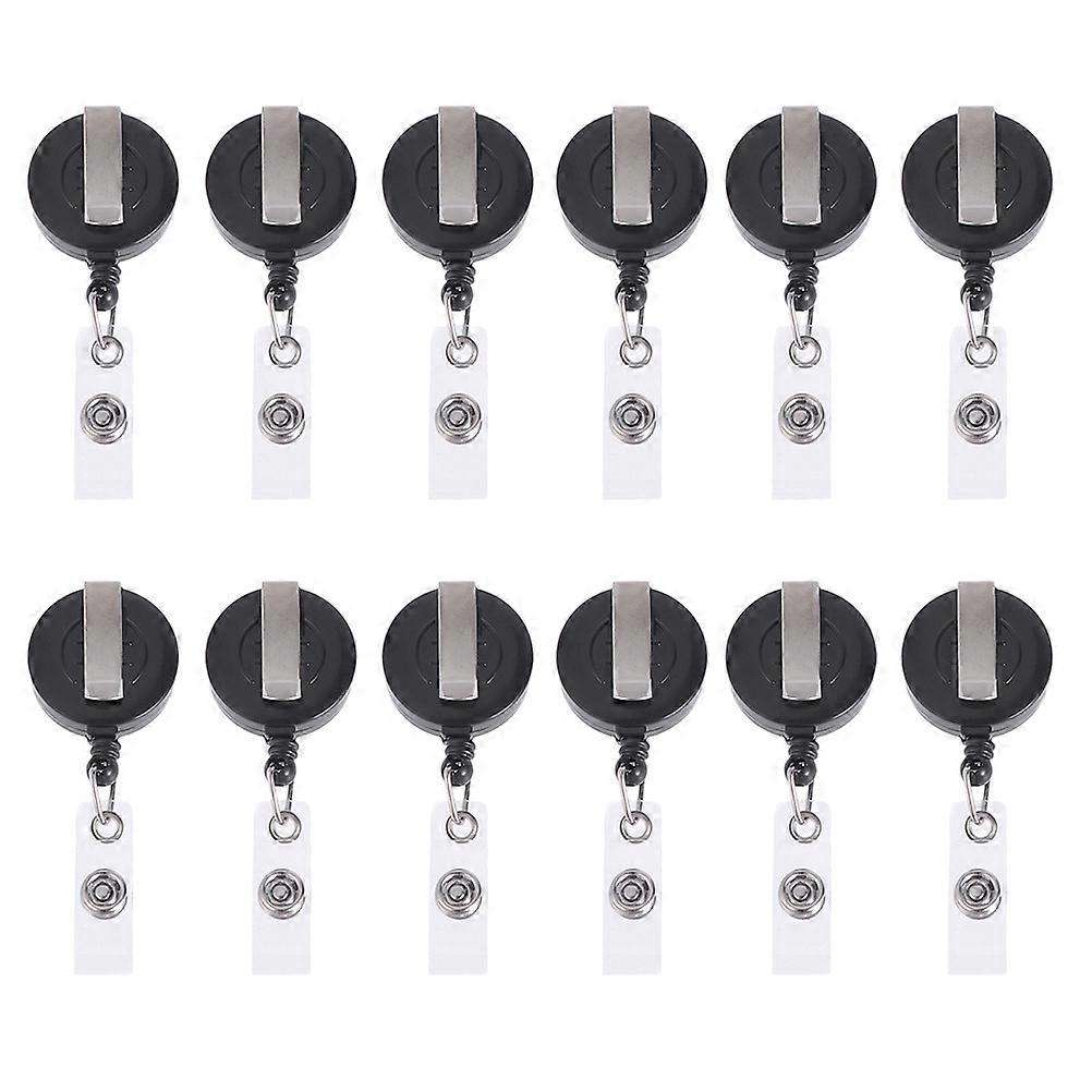 12pcs Portable Badge Holder Black ID Reel Clip for Men Women Nurse