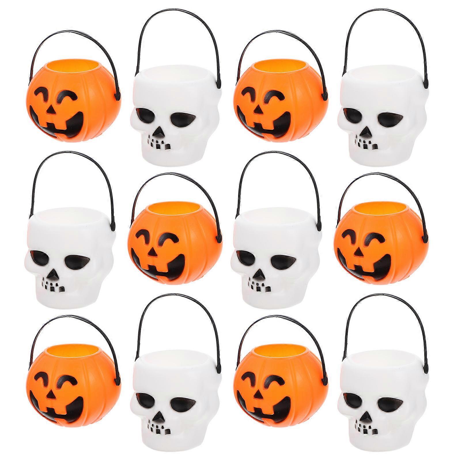 12pcs Halloween Candy Containers with Skull & Pumpkin Design for Trick or Treat Parties – Creative Snack & Treat Holders