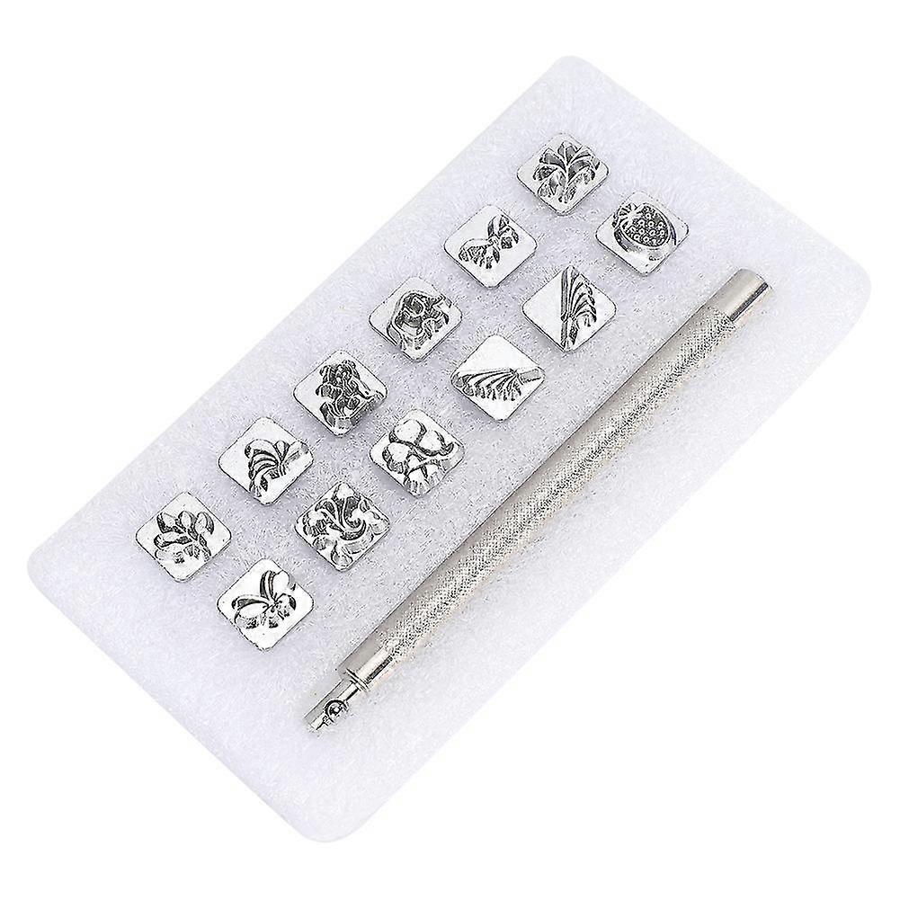 12Pcs Stamping Punch Tool Plants Animals Pattern DIY Leather Craft Carving Stamper 1Pc Handle