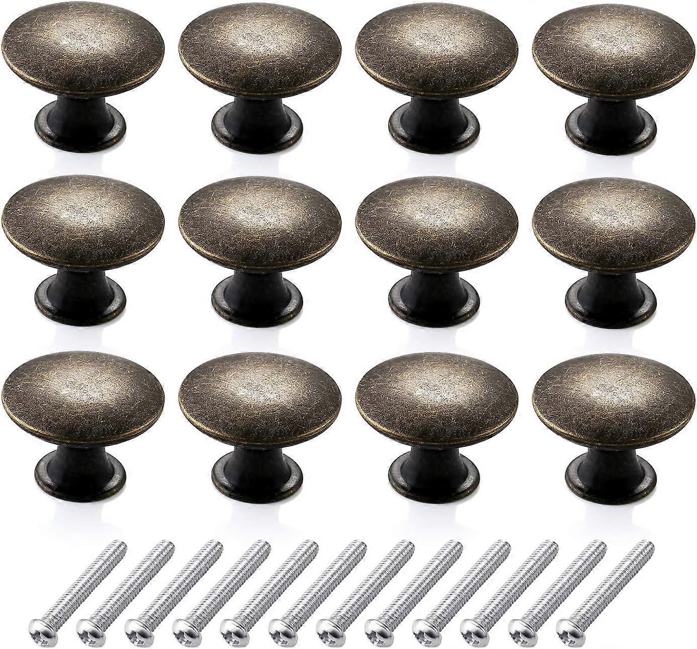 12 Pieces Vintage Round Dresser Knobs Drawer Knobs Kit, Antique Brass Knob30mmBronze