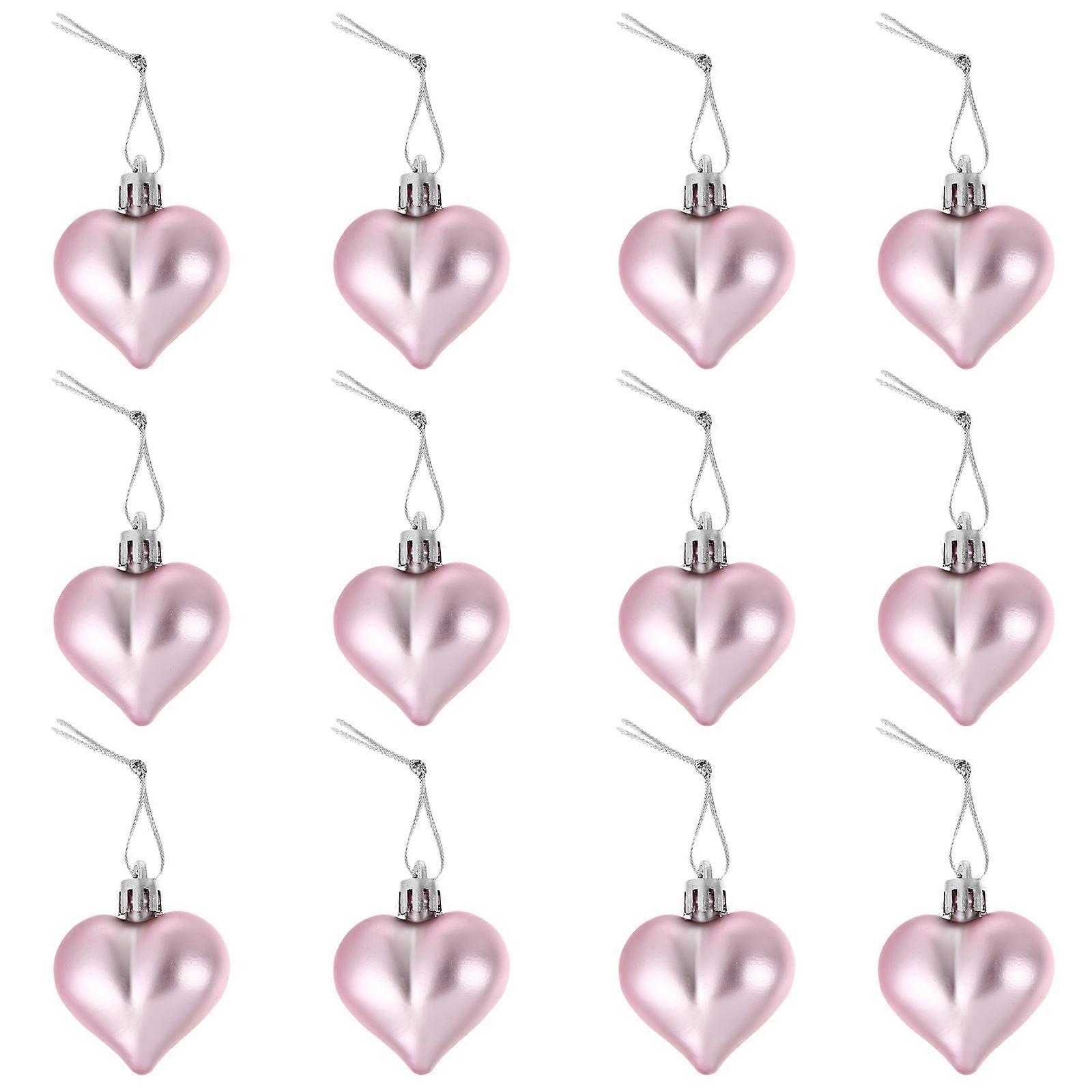 12 Pcs Heart Shape Christmas Decoration Pendant Christmas Balls Creative Plastic Christmas Pendant Hanging Ornament (Pink)
