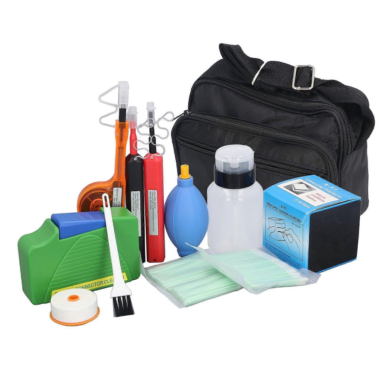 Feature:1. [Fiber Optic Cleaning Kit] Including 1.25mm and 2.5mm fiber end face cleaning pens, MPO MTP cleaning pen, cleaning box, box replacement core, end face cleaning paper, cotton swabs, air blower, brush, empty alcohol bottle.2. [Long Lasting] 1.25mm and 2.5mm cleaning pens can clean more than 800 times; MPO MTP cleaning pen, transparent and visible design, can clean more than 600 times; Fiber end face cleaning box can clean more than 550 times.3. [Efficient Cleaning] Easily remove dust, oil, and debris from connectors with manual operation, lightweight design, high density textile cleaning paper. Achieve perfect end faces and connector polishing without alcohol or solvents.4. [Anti Static] The cleaning paper has strong anti static performance to avoid dust reattachment after cleaning. Made from non woven fabric, lint free, allowing dual use for dry and wet cleaning.5. [Portable Storage Bag] The fiber optic cleaner kit comes with a large capacity storage bag for easy carrying, accommodating all tools for convenient and professional storage.Specification:Item Type: Fiber Optic Cleaning KitMaterial: ABSFiber Optic End Face Cleaning Box: Cleaning Times: >550 times, SC FC ST LC can replace the core by oneselfFiber Optic End Face Cleaning Pen: Suitable for 1.25mm cleaning LC MU x 1, suitable for 2.5mm cleaning SC FC ST E2000 x 1Cleaning Times: >800 timesSuitable for: Cleaning SC FC ST LC MU connectorsFiber Optic Cleaning Pen: Suitable for: MPO MTPCleaning Times: >600 timesStorage Bag Size: 25x20x12cm / 9.84x7.87x4.72in.Package List:1 x Fiber Optic Cleaning Box1 x Fiber Optic Cleaning Box Instruction Manual2 x Cleaning Pen (1 x 1.25mm, 1 x 2.5mm)2 x Cleaning Pen Instruction Manual1 x MPO MTP Cleaning Pen1 x MPO MTP Cleaning Pen Instruction Manual1 x Alcohol Bottle (Empty)1 x Cleaning Box Replacement Core1 x Cleaning Paper1 x Brush1 x Air Blower1 Pack x 1.25mm Cotton Swabs (100 Pcs)1 Pack x 2.5mm Cotton Swabs (100 Pcs)1 x Storage Bag