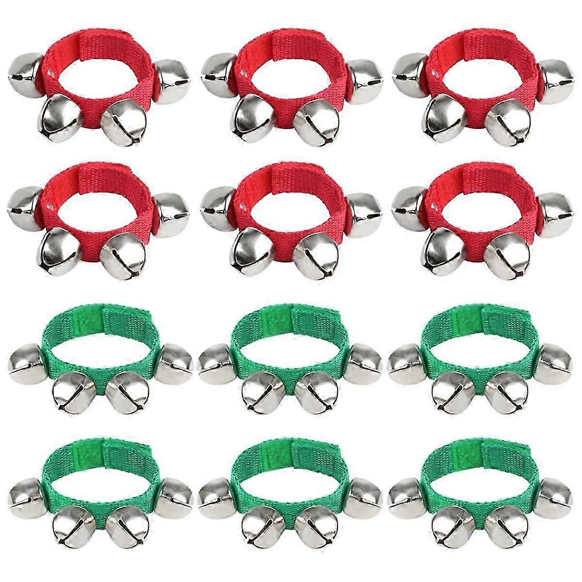 12 Pcs Wrist Band Bells Bracelets Jingle Bells Musical Ankle Bells Rhythm Instrument for Kids Chris