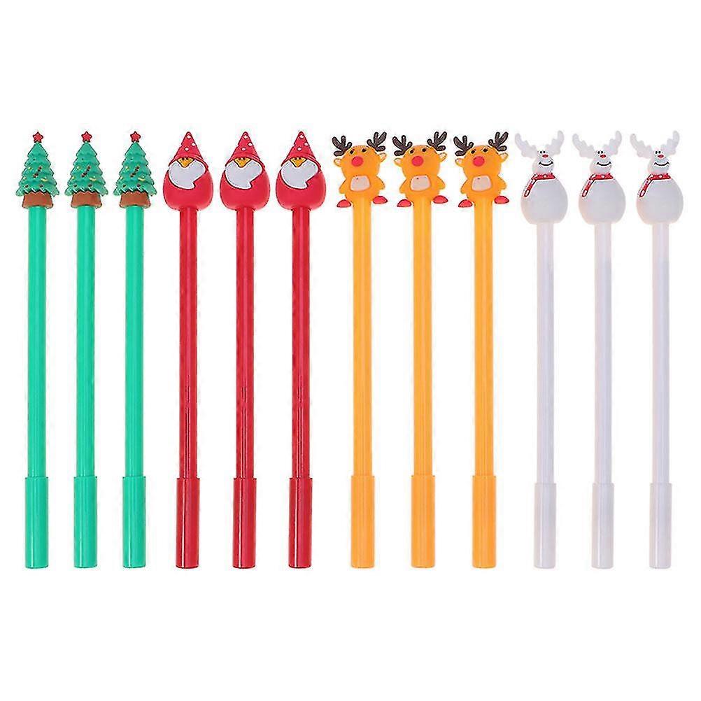12pcs Christmas Themed Gel Pens Lovely Signature Pens For Students (assorted Color)