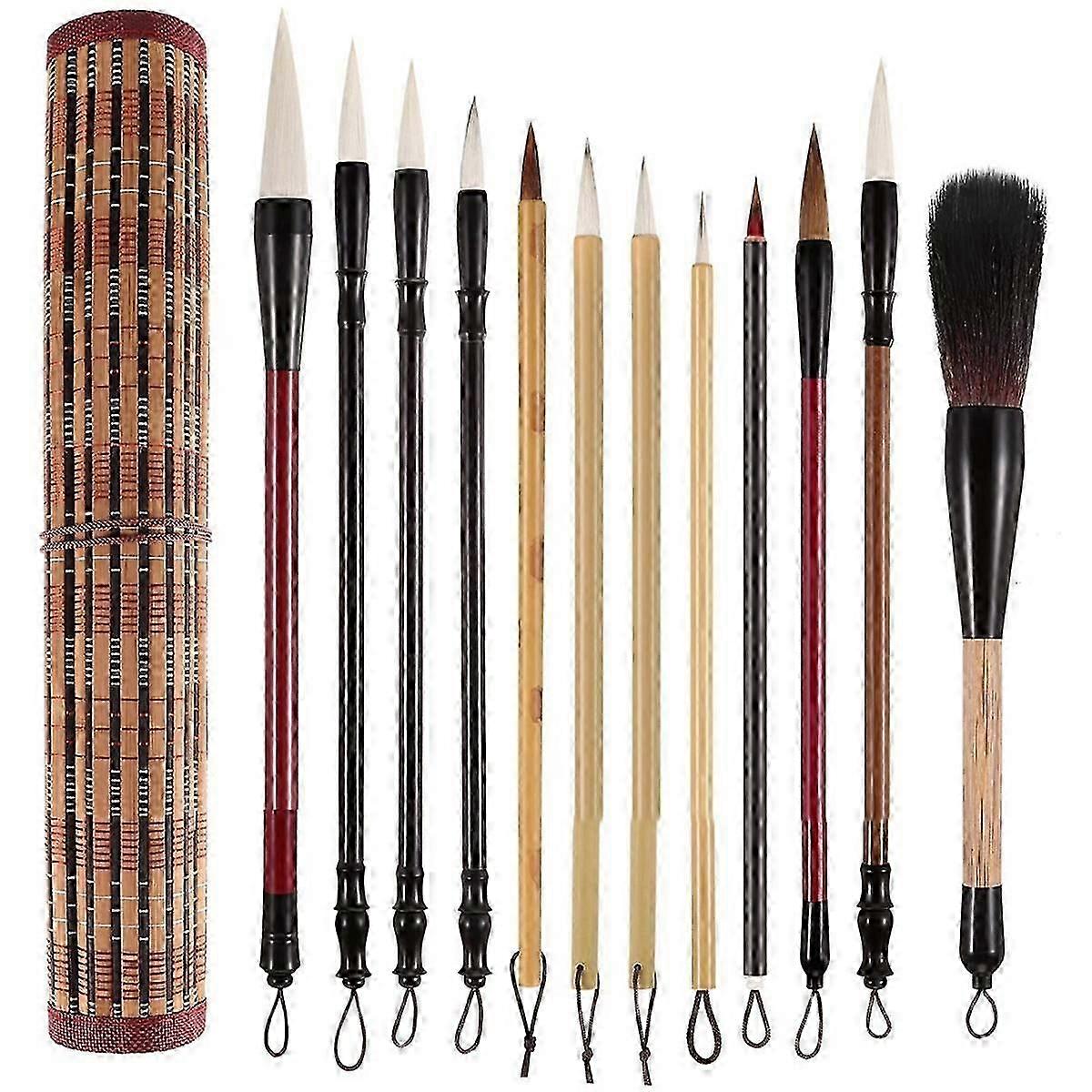 12PCS Chinese Calligraphy Brushes with Roll-Up Holder, Perfect suitable for Watercolor, Kanji, Sumi Painting
