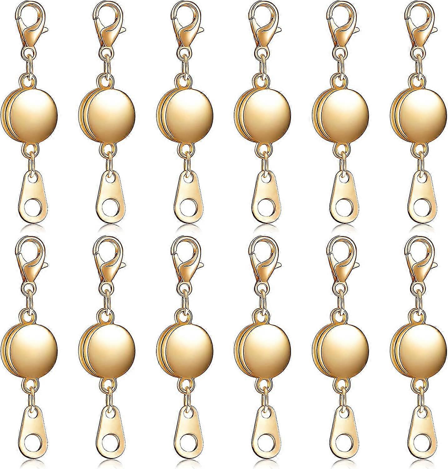 12 Pieces Locking Magnetic Jewelry Clasp Round Necklace Clasp Closures Bracelet Extender For Jewelry Making (gold)