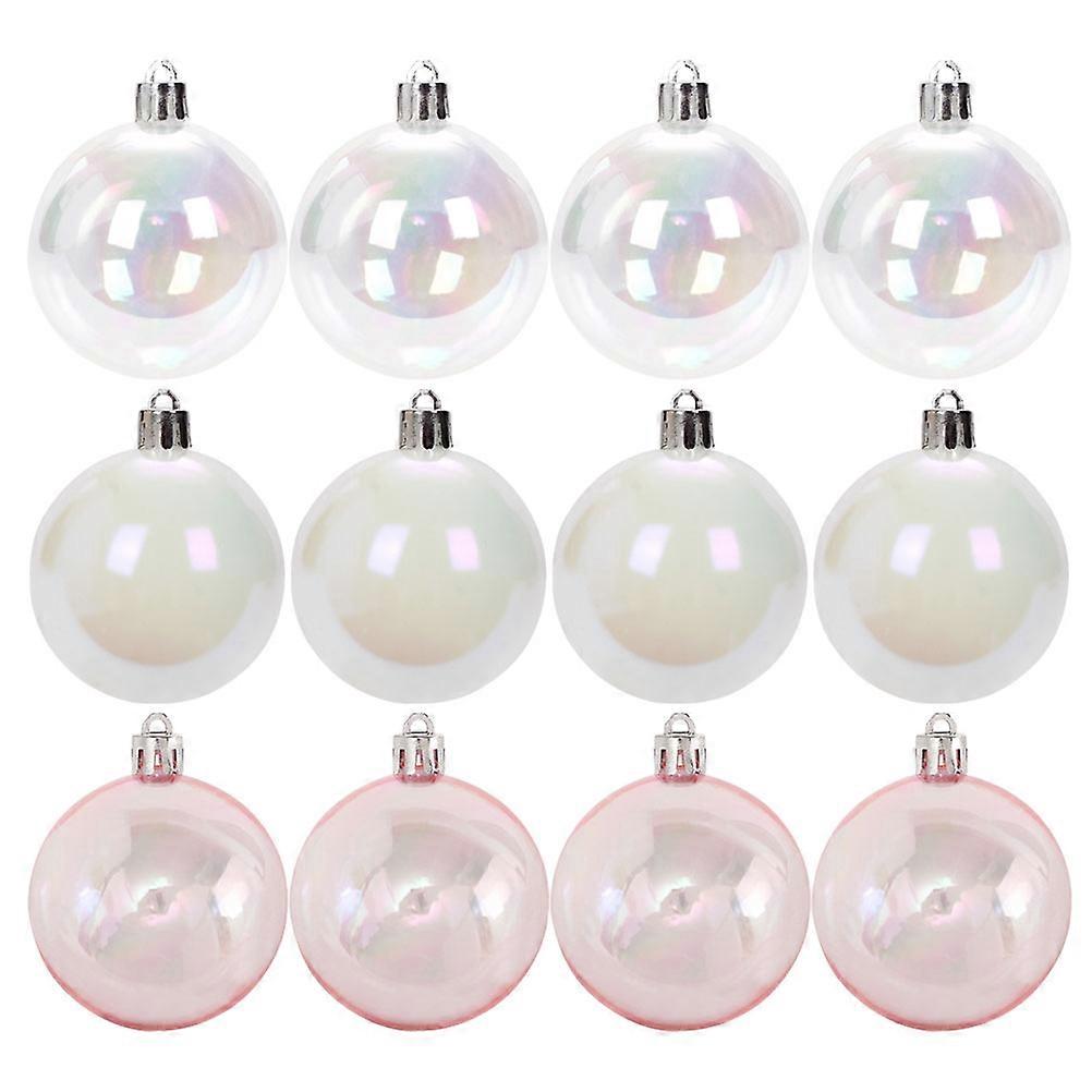 12pcs Shatterproof Plastic Christmas Hanging Balls – Xmas Tree Decorations for Indoor & Outdoor Holiday Parties – White, Pink & Colorful Transparent