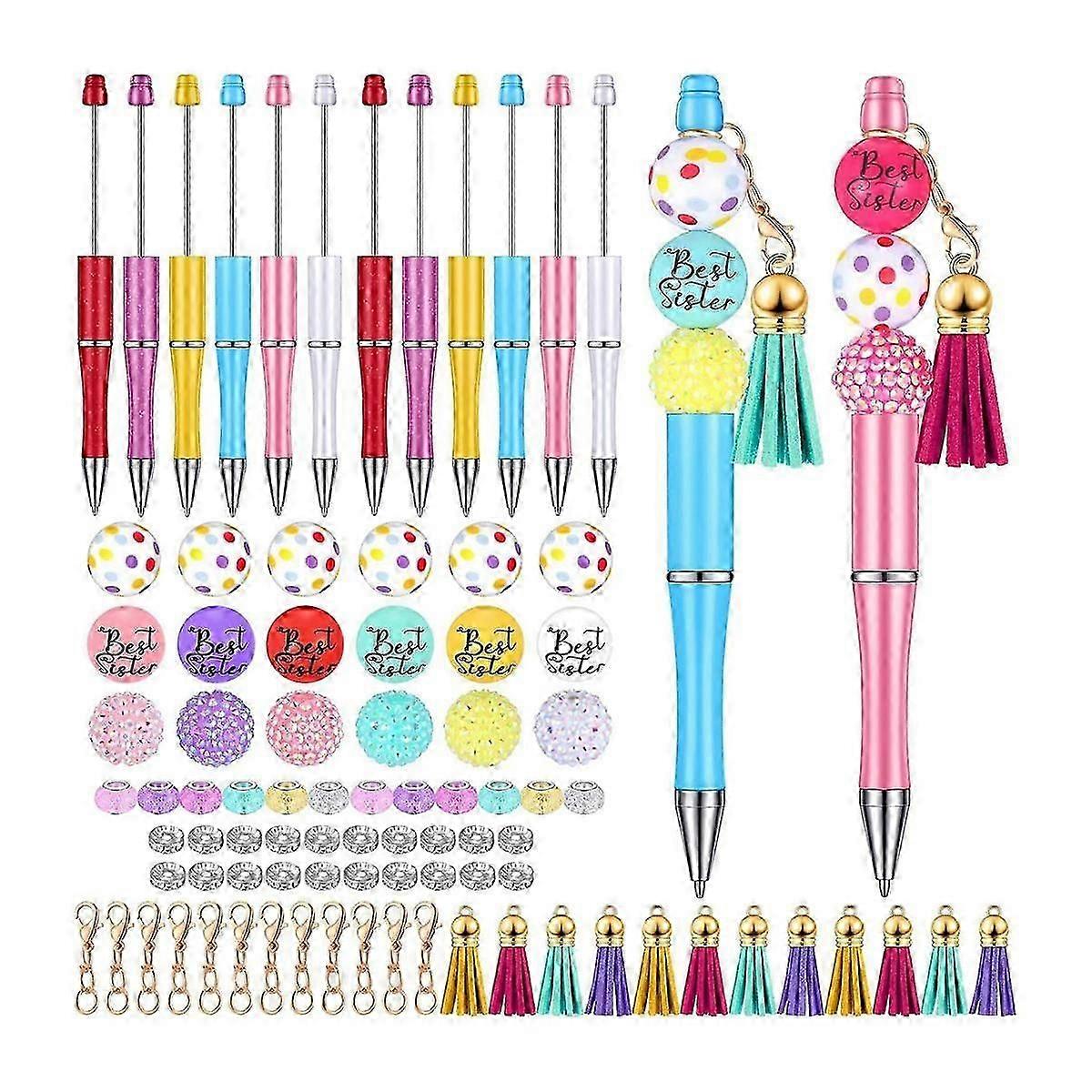 12 Pieces Beadable Pens Bulk Bead Pens with Assorted Colors Beads Pen DIY Making Kit Multicolor Ballpoint Pen for Kids