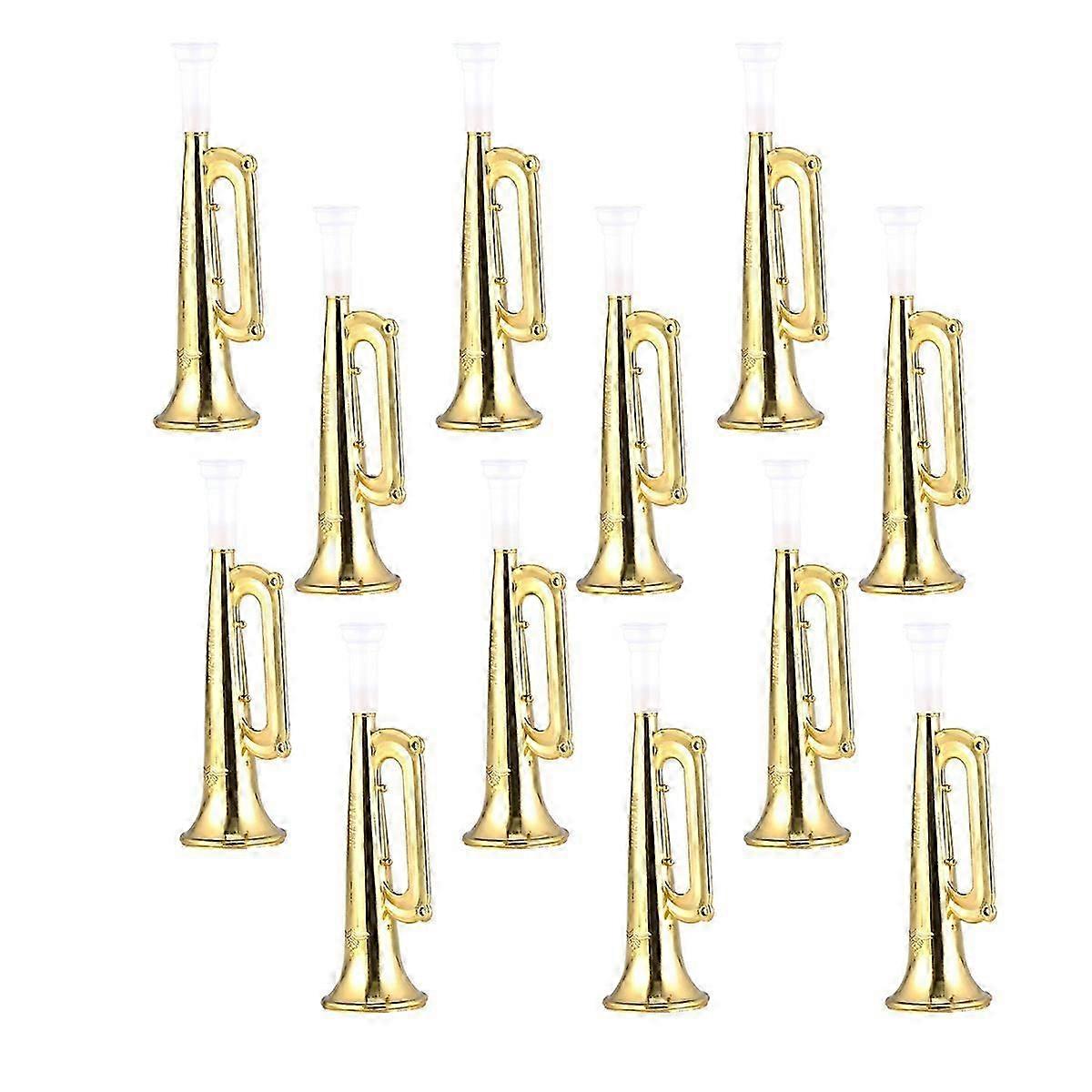 12pcs Plastic Trumpet Noise Maker Kids Toys Cheerleader Football Match Cheering Props Birthday Party Favor Gift (Golden)