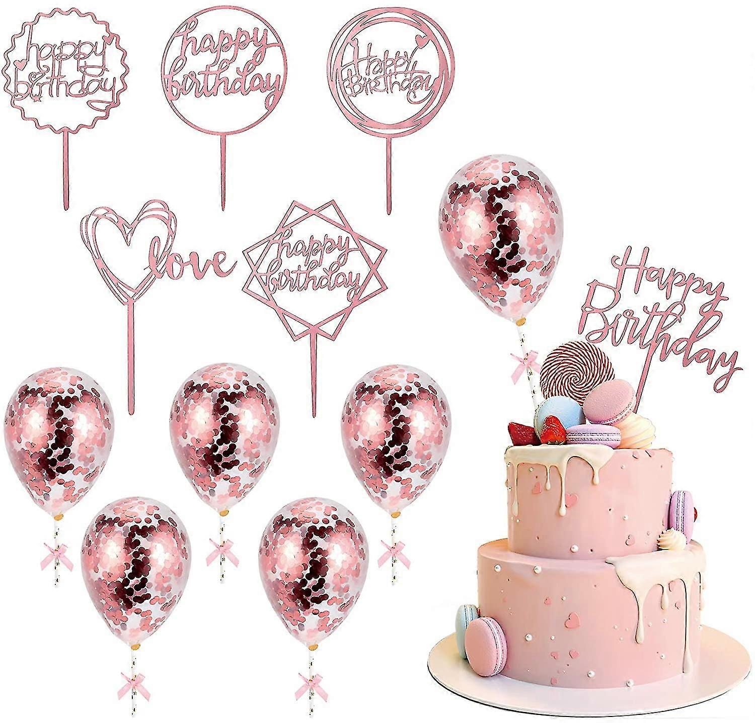 12pcs Rose Gold Birthday Cake Topper Set, 6 Pcs Acrylic Cake Topper 6 Pcs Rose Gold Confetti Balloon Happy Birthday Cake Topper Set For Birthday Cake