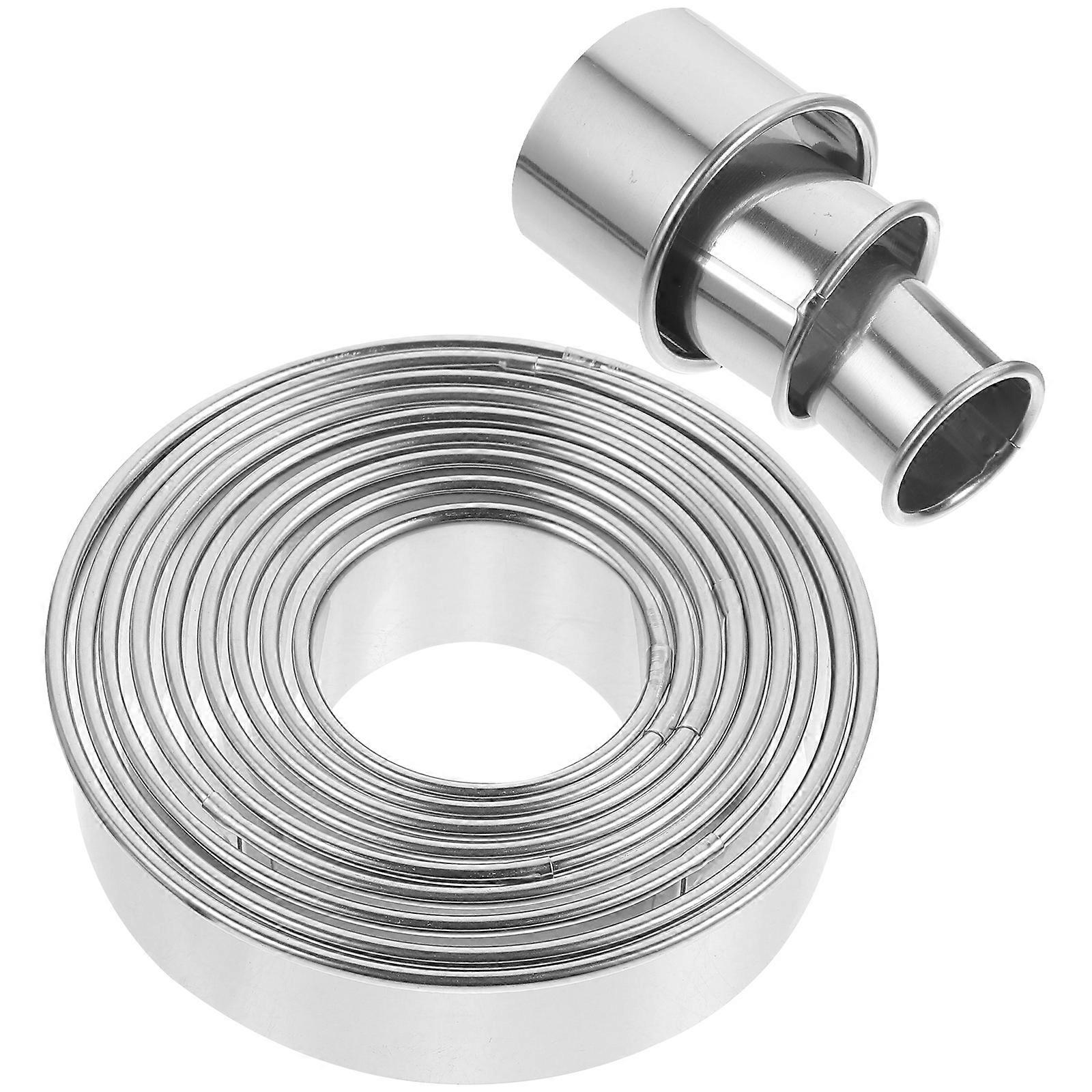 Description This set of round cutting molds is made of stainless steel. Perfect for creating mousse rings, biscuit molds, and dumpling skins, these molds are versatile and easy to use. The set comes in a convenient bag for easy storage and transport. Whether you're a professional baker or a home cook, these round cutting molds are a must-have for your kitchen. With their durable construction and precise design, they'll help you create perfect baked goods every time. Features -Color:Silver-Material:Stainless steel - Size 1: 11.70X11.70X3.00cm/4.60X4.60X1.18in - Size 2: 4.50X4.50X3.00cm/1.77X1.77X1.18in - Size 3: 5.30X5.30X3.00cm/2.08X2.08X1.18in - Size 4: 6.10X6.10X3.00cm/2.40X2.40X1.18in - Size 5: 6.90X6.90X3.00cm/2.71X2.71X1.18in - Size 6: 7.70X7.70X3.00cm/3.03X3.03X1.18in - Size 7: 8.50X8.50X3.00cm/3.34X3.34X1.18in - Size 8: 9.30X9.30X3.00cm/3.65X3.65X1.18in - Size 9: 10.10X10.10X3.00cm/3.97X3.97X1.18in - Size 10: 11.00X11.00X3.00cm/4.32X4.32X1.18in - Size 11:3.7X3.7X3cm/1.45x1.45x1.18inch - Size 12: 2.8X2.8X3cm/1.10x1.10x1.18inch -Stainless Steel material: made of stainless steel, durable and easy to clean.-Versatile design: includes different sizes of round cutting molds, suitable for making various shaped foods.-Creative baking: perfect for making biscuits, mousse, dumpling skins, and other baked goods.-Easy operation: effortlessly cut out perfect round shapes, making your baking more professional.-Essential for home kitchens: suitable for home kitchens, bakeries, and other occasions, meeting all your baking needs.Packing list: 12 x muffin rings