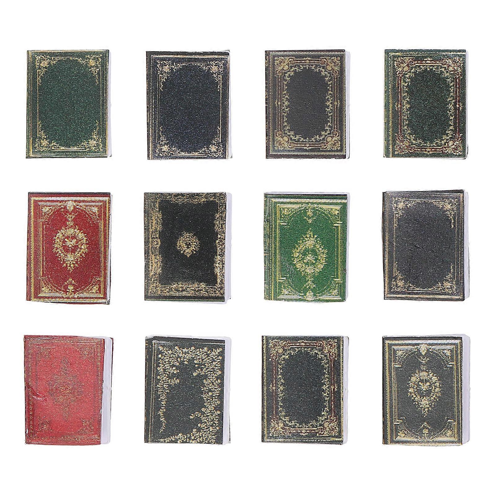 12pcs Miniature Retro Books, Delicate Mini House Decor for Dollhouses, Realistic Home Decoration and Photo Props, Safe Material for Miniature Scenes