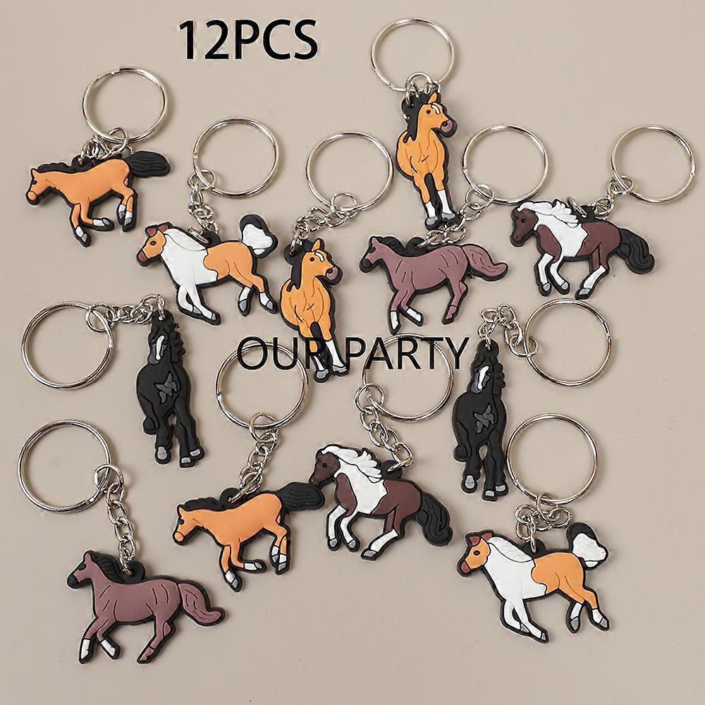 12Pcs Horse Theme Horse Racing PVC Keychain Wild Western Cowboy Backpack Pendant for Birthday Party Favors Pinata Fillers