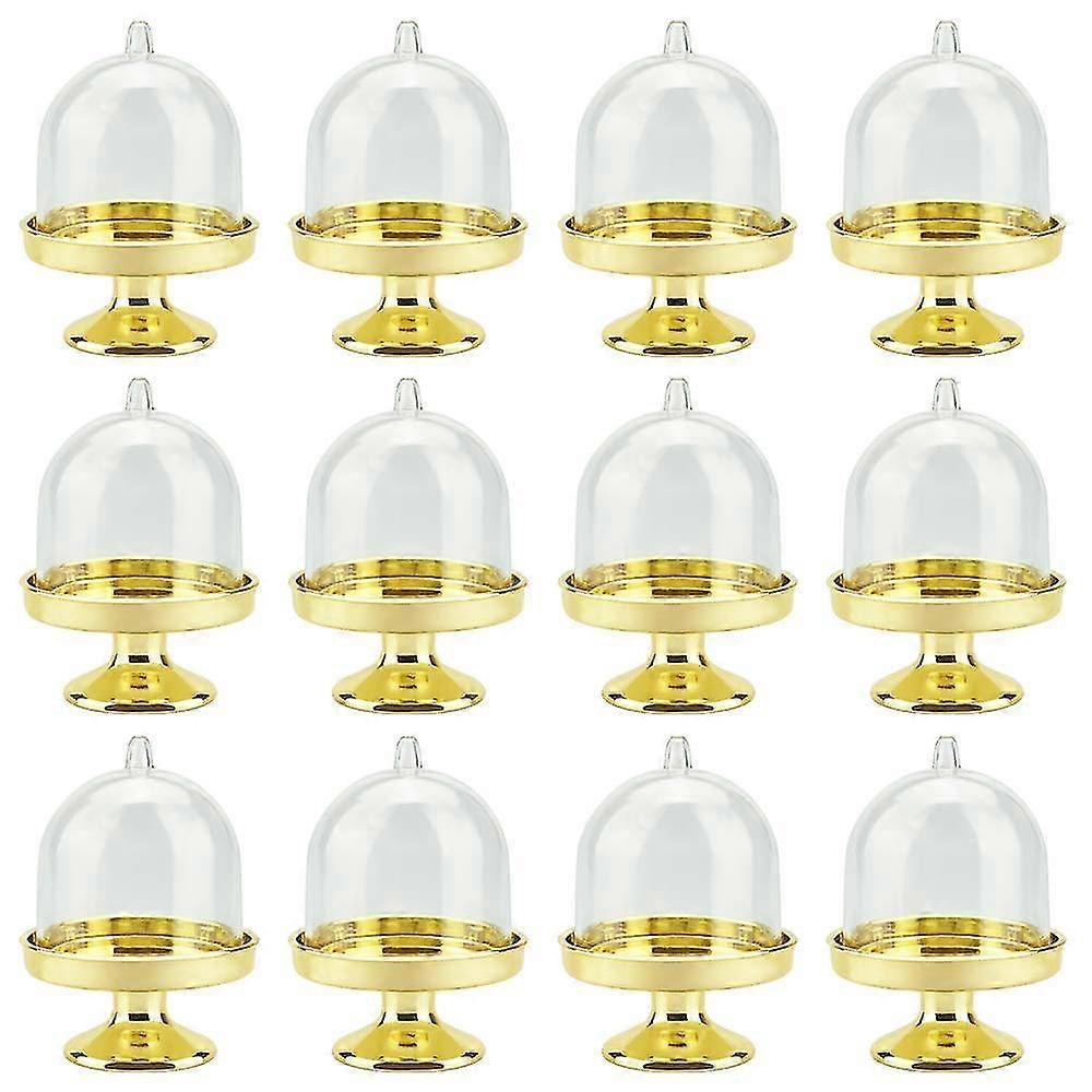 12 Pcs Mini Cake Stand, Cupcake Display Plate Candy Holders Plastic Candy Box For Chocolate, Cheese, Coconut Macaroons, Rum Balls (golden)