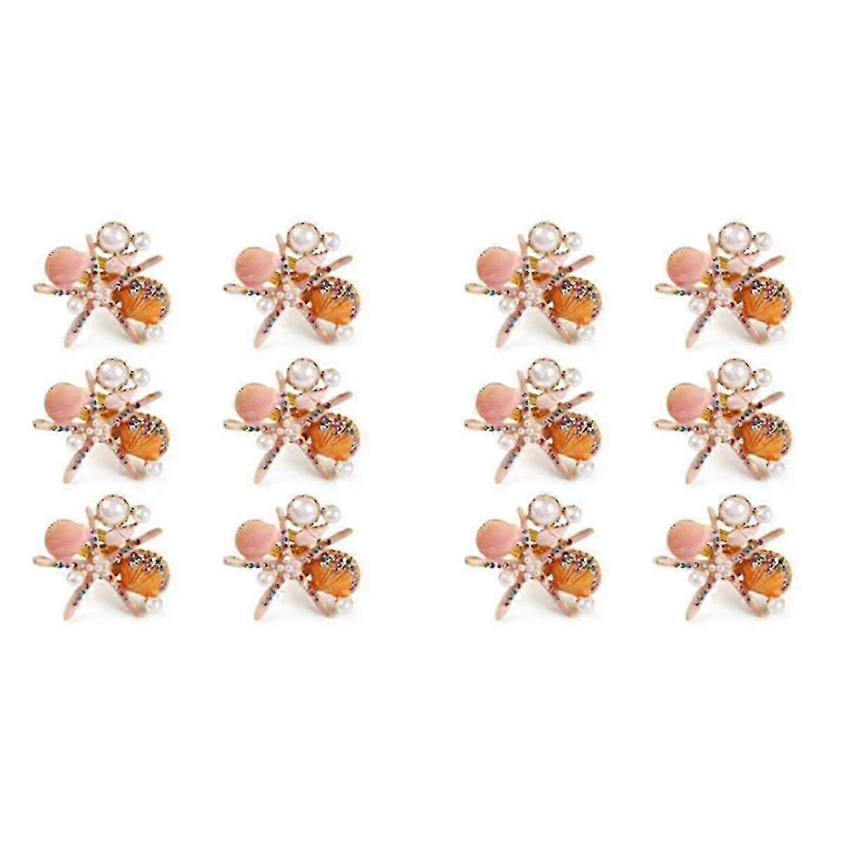 12 Pcs Starfish Napkin Rings,Pearl Rhinestone Ocean Nautical Napkin Ring Holders Napkin Buckle for