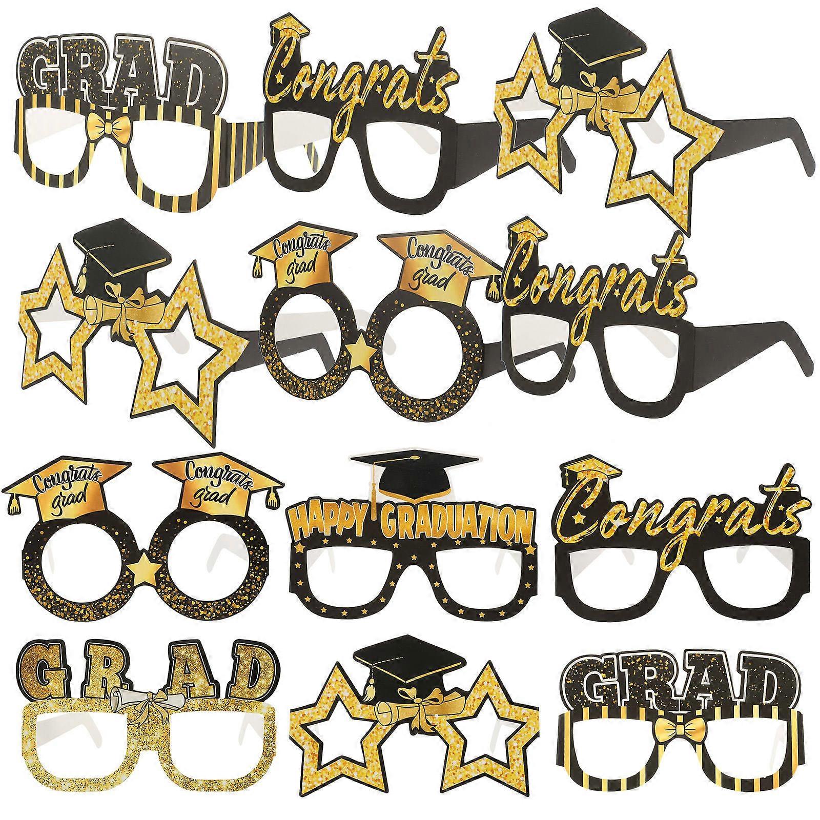 12pcs Graduation Party Glasses Fun Paper Photo Props for Graduation Celebrations, Unique Decorations for Photo Booths and Events