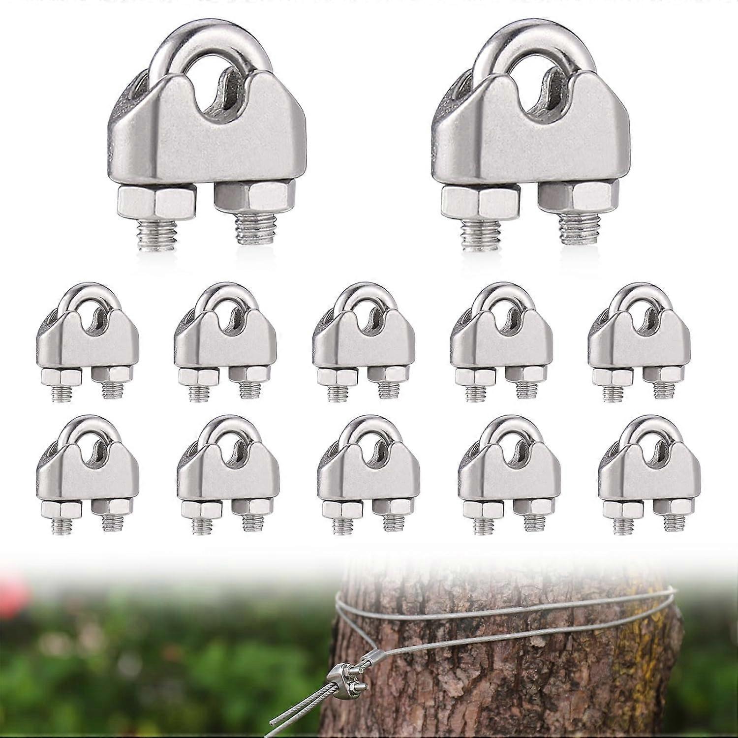 12Pcs M3 Cable Clamps Heavy Duty, 304 Stainless Steel U Bolts Wire Rope Clamps, Support a Load of 300 Tons, Metal Cable Crips for Garden Fences Cable