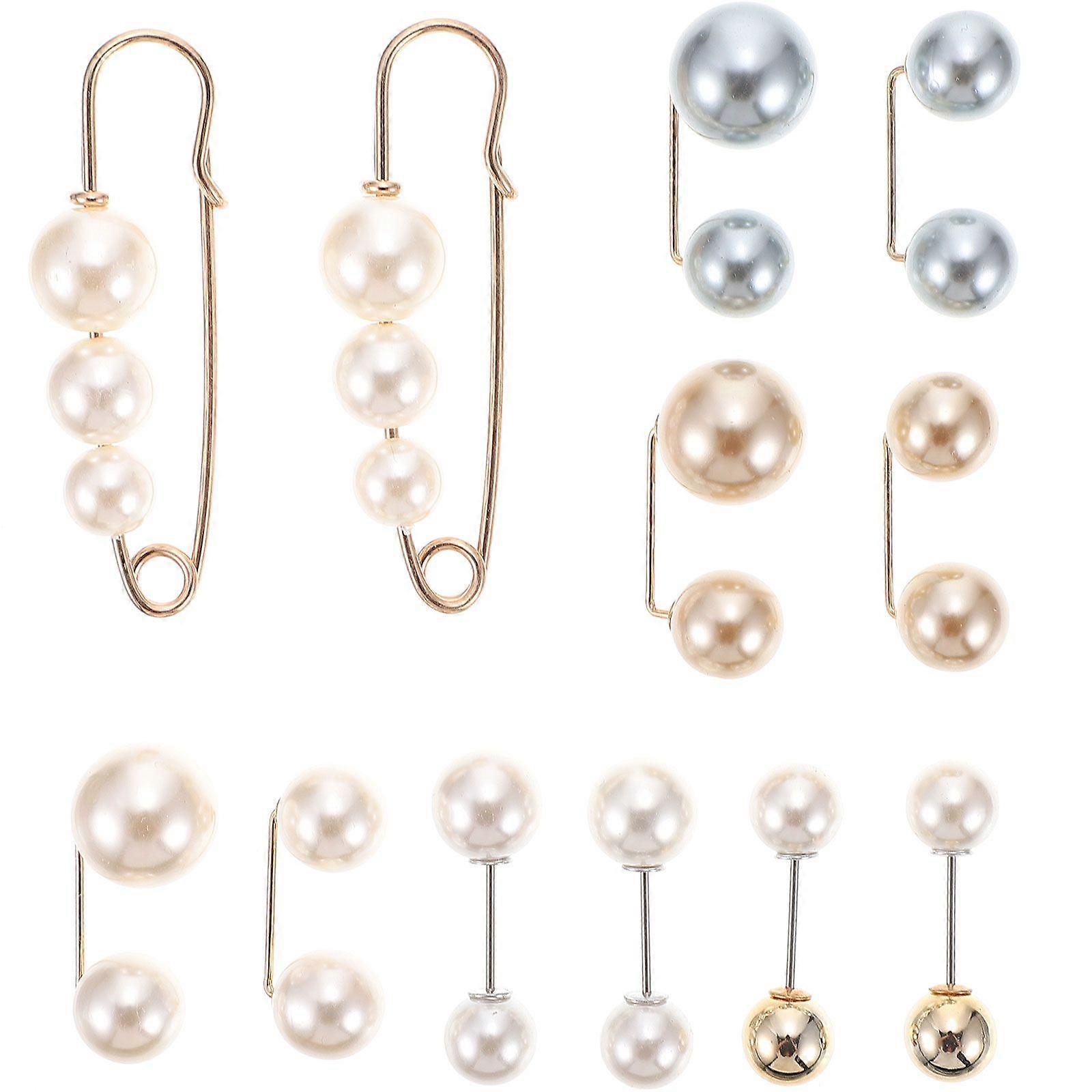 12pcs Delicate Pearl Brooch Pin Skirt Waist Button Durable Alloy Brooch Pin
