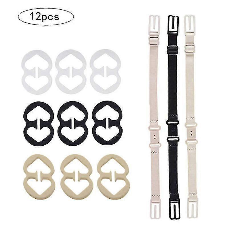 12 Pcs Bra Strap Clips Set Ladies Elastic Adjustable Bra Strap With Bolt Style Buckle,black White Transparent Skin Color 3 Pcs Bra Straps 9 Pcs Bra Cl