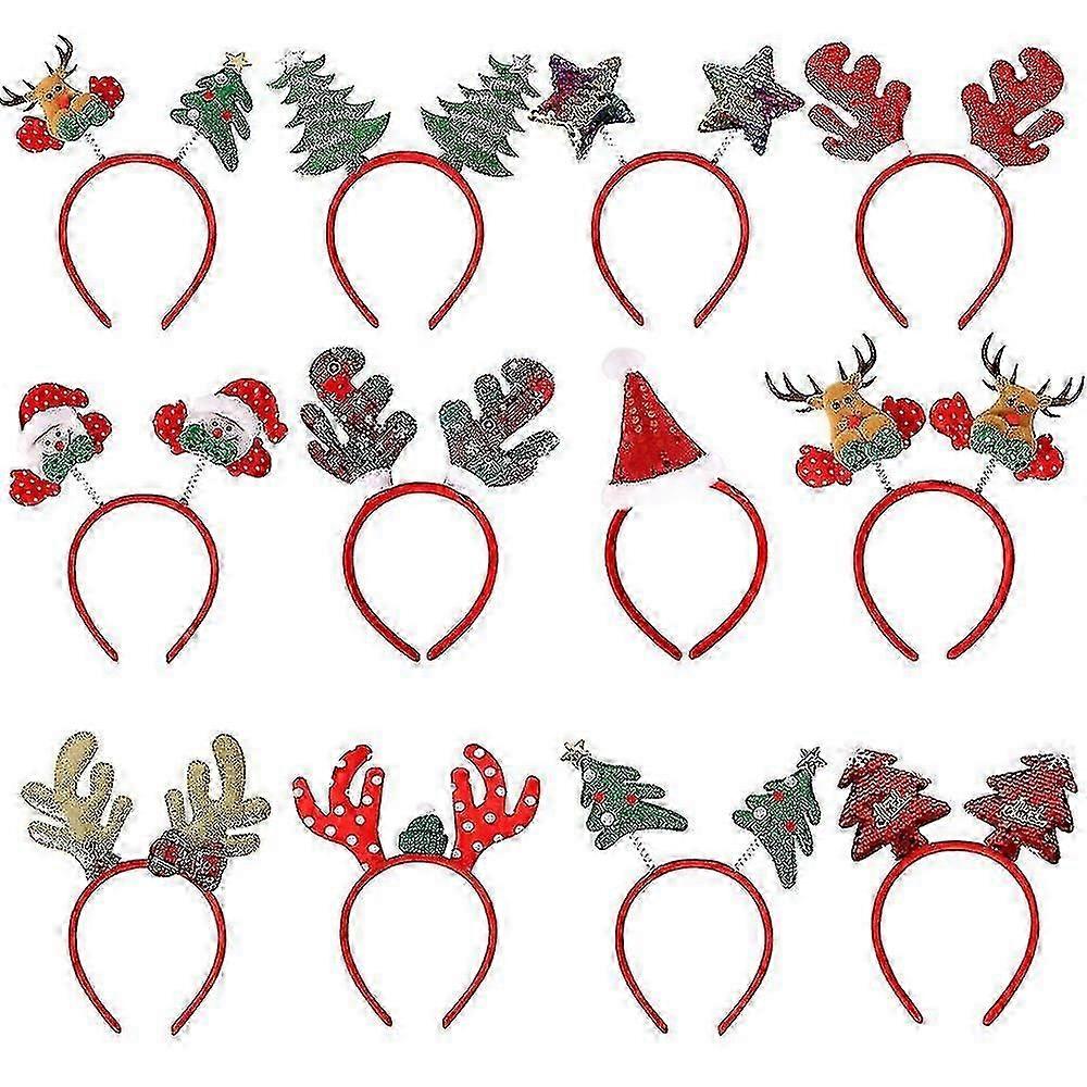12pcs Christmas Headband Reindeer Antlers Headband Christmas Tree Hair Band For Kids Women Xmas Hair Accessories Party Favors